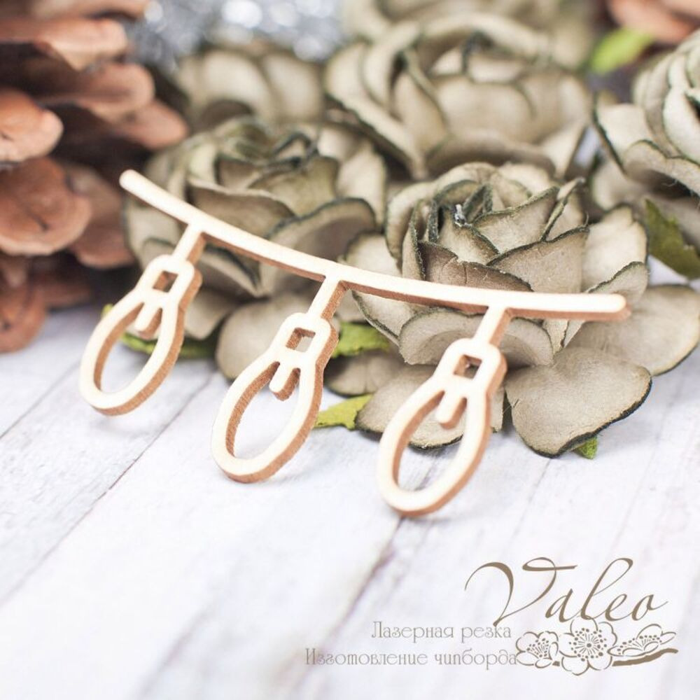 Чіпборд Valeo Підвіска ліхтарики 59*27мм V2267 виготовлена з пивного картону молочного кольору. Товщина картону 1,5 мм. Краї чисті, світло-коричневі. Застосовується як декоративні елементи при виготовленні альбомів, листівок, запрошень