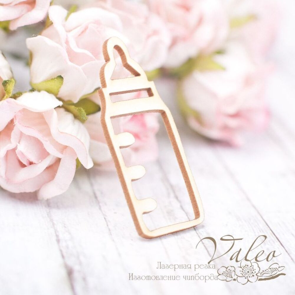 Чіпборд Valeo Пляшечка 17*40мм V2067 виготовлений із пивного картону молочного кольору. Товщина картону 1,5 мм. Краї чисті, світло-коричневі. Застосовується як декоративні елементи при виготовленні альбомів, листівок, запрошень