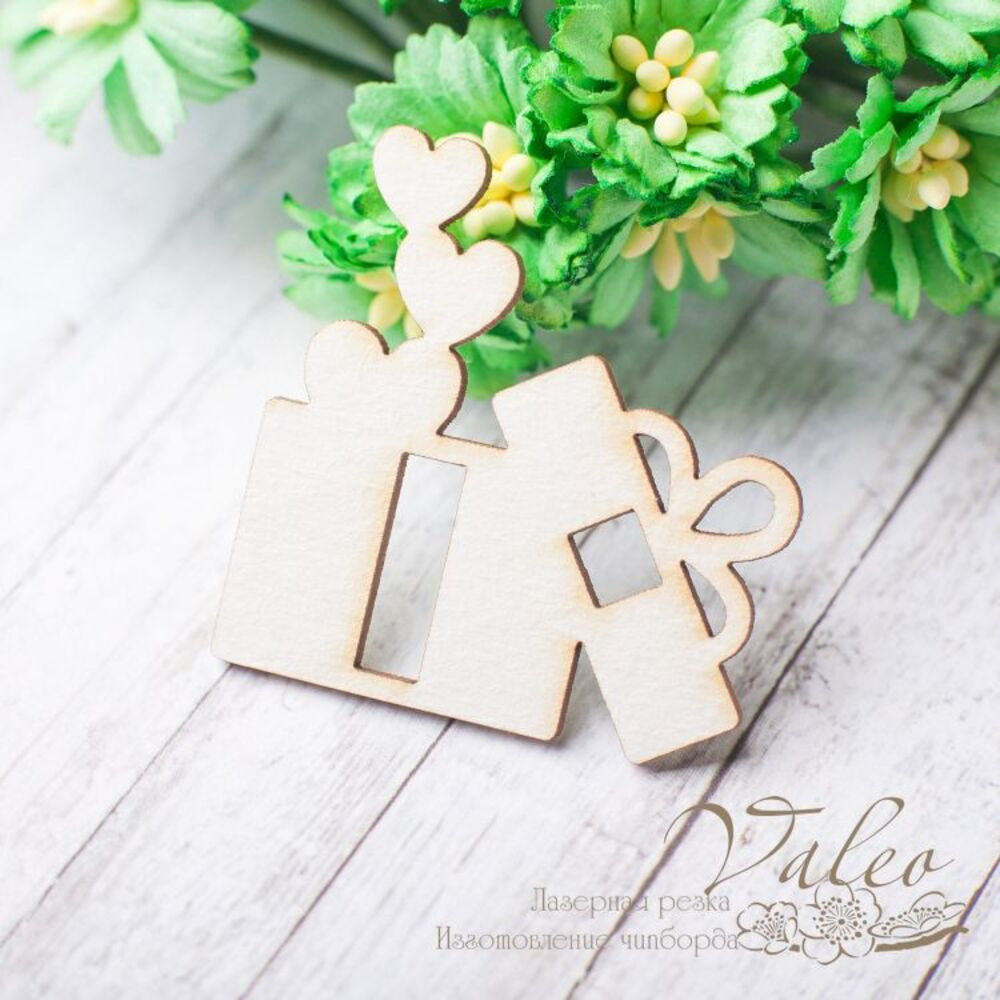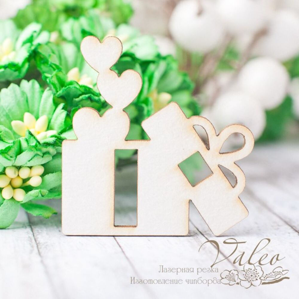 Чипборд Valeo Подарочек 38*39мм V2398 изготовлен из пивного картона молочного цвета. Толщина картона 1,5мм. Края чистые, светло коричневые. Применяется в качестве декоративных элементов при изготовлении альбомов, открыток, пригласительных