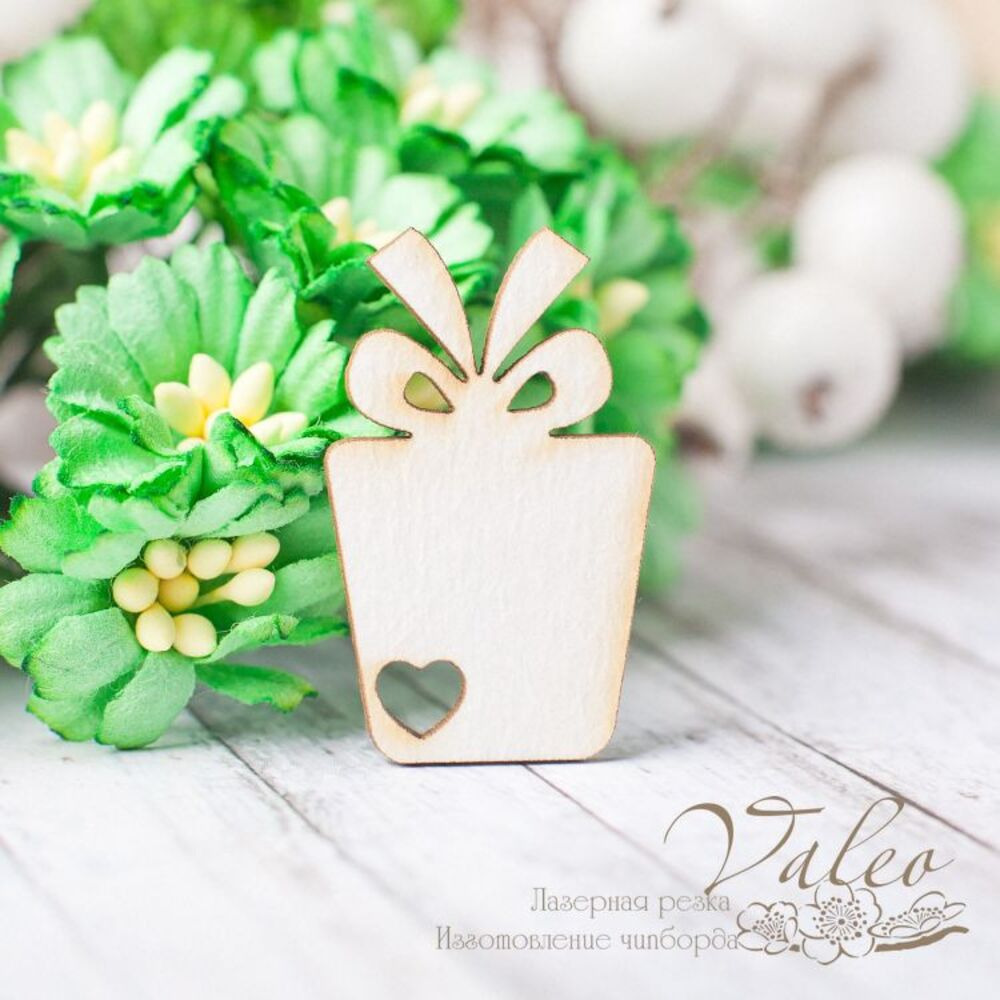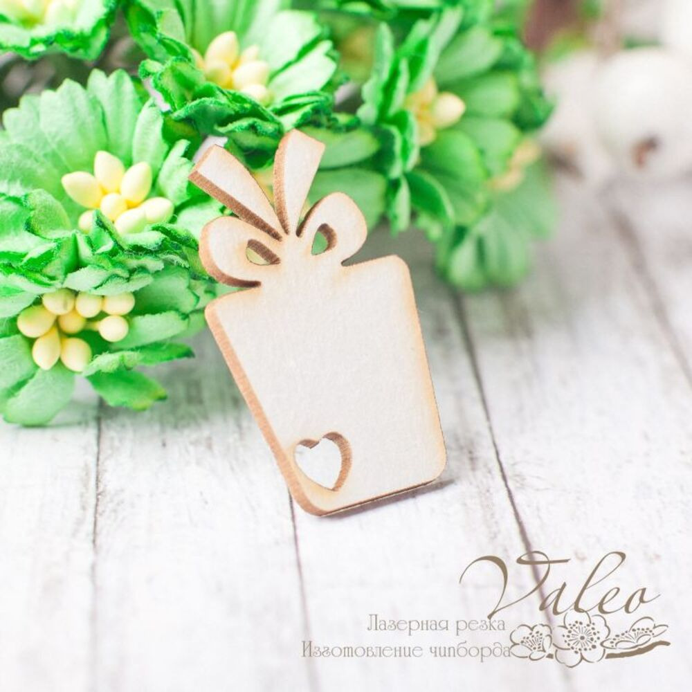 Чіпборд Valeo Подарунок 19*31мм V2321 виготовлений із пивного картону молочного кольору. Товщина картону 1,5 мм. Краї чисті, світло-коричневі. Застосовується як декоративні елементи при виготовленні альбомів, листівок, запрошень