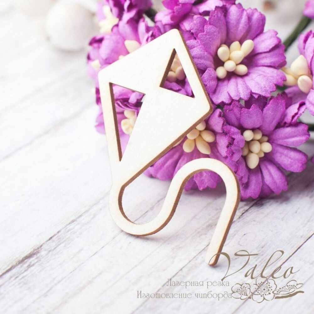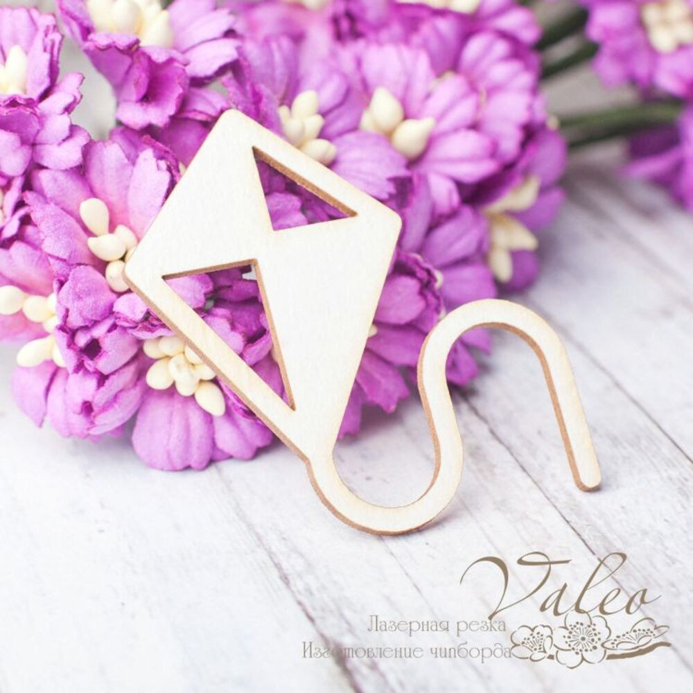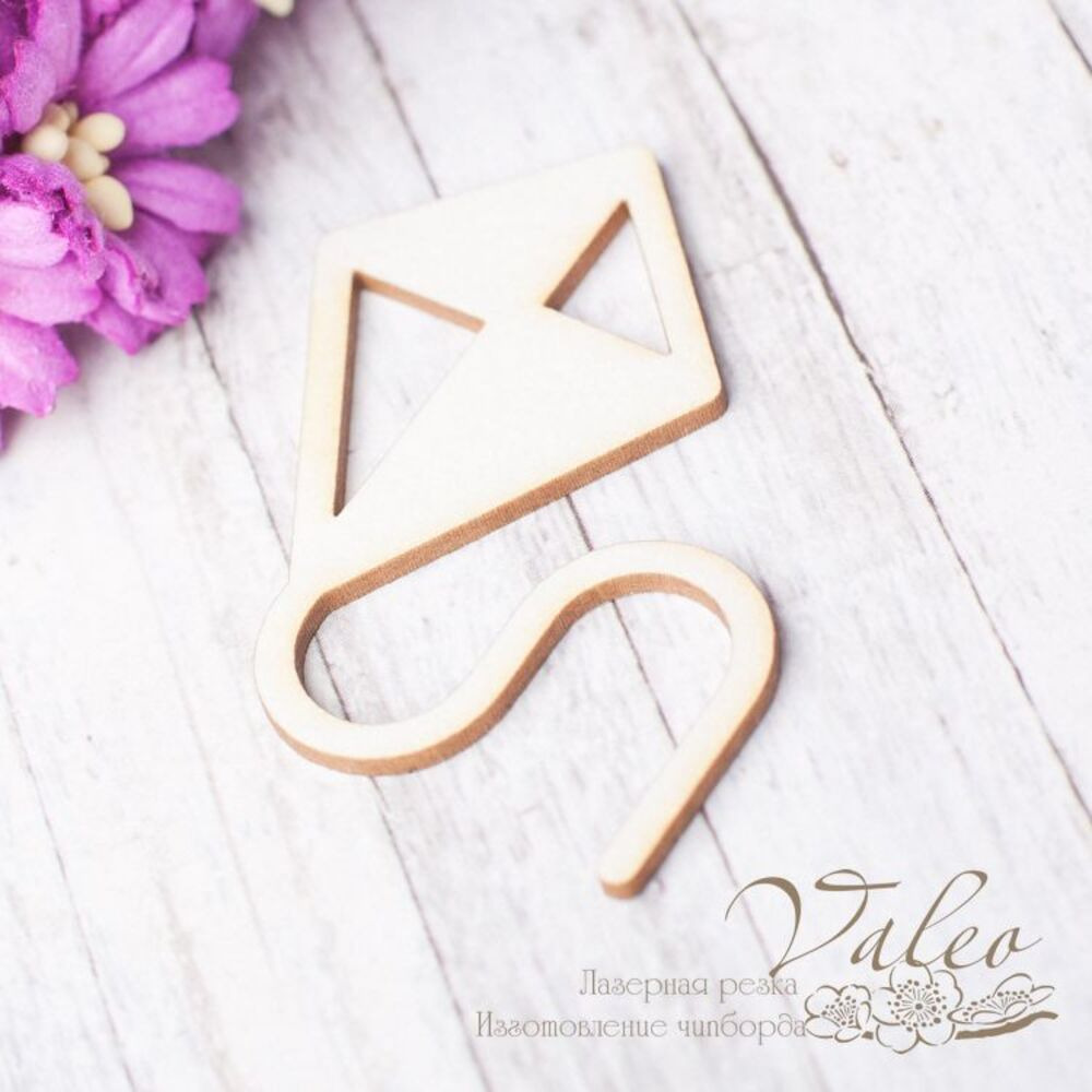 Чіпборд Valeo Повітряний змій 40*43мм V2565 виготовлений із пивного картону молочного кольору. Товщина картону 1,5 мм. Краї чисті, світло-коричневі. Застосовується як декоративні елементи при виготовленні альбомів, листівок, запрошень