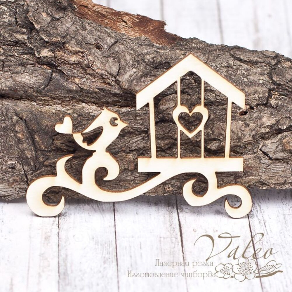 Чіпборд Valeo Пташка та клітина 63*47мм V1483 виготовлений із пивного картону молочного кольору. Товщина картону 1,5 мм. Краї чисті, світло-коричневі. Застосовується як декоративні елементи при виготовленні альбомів, листівок, запрошень