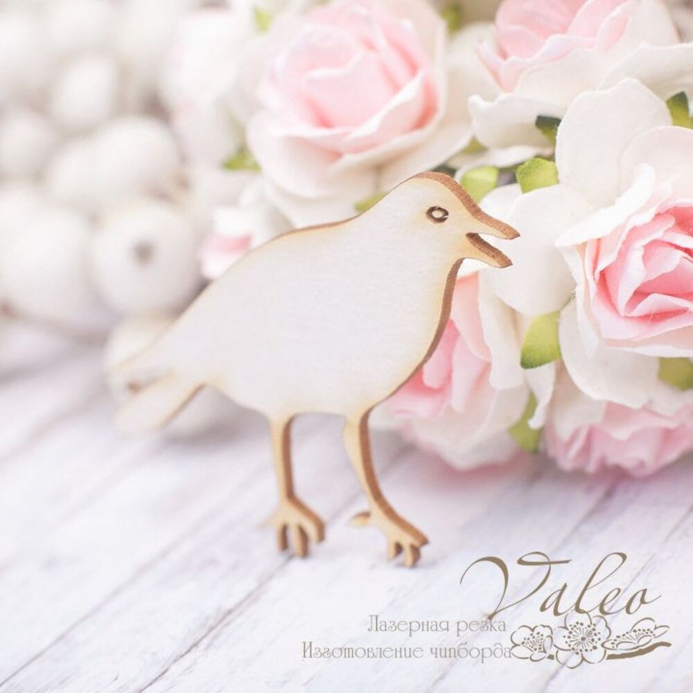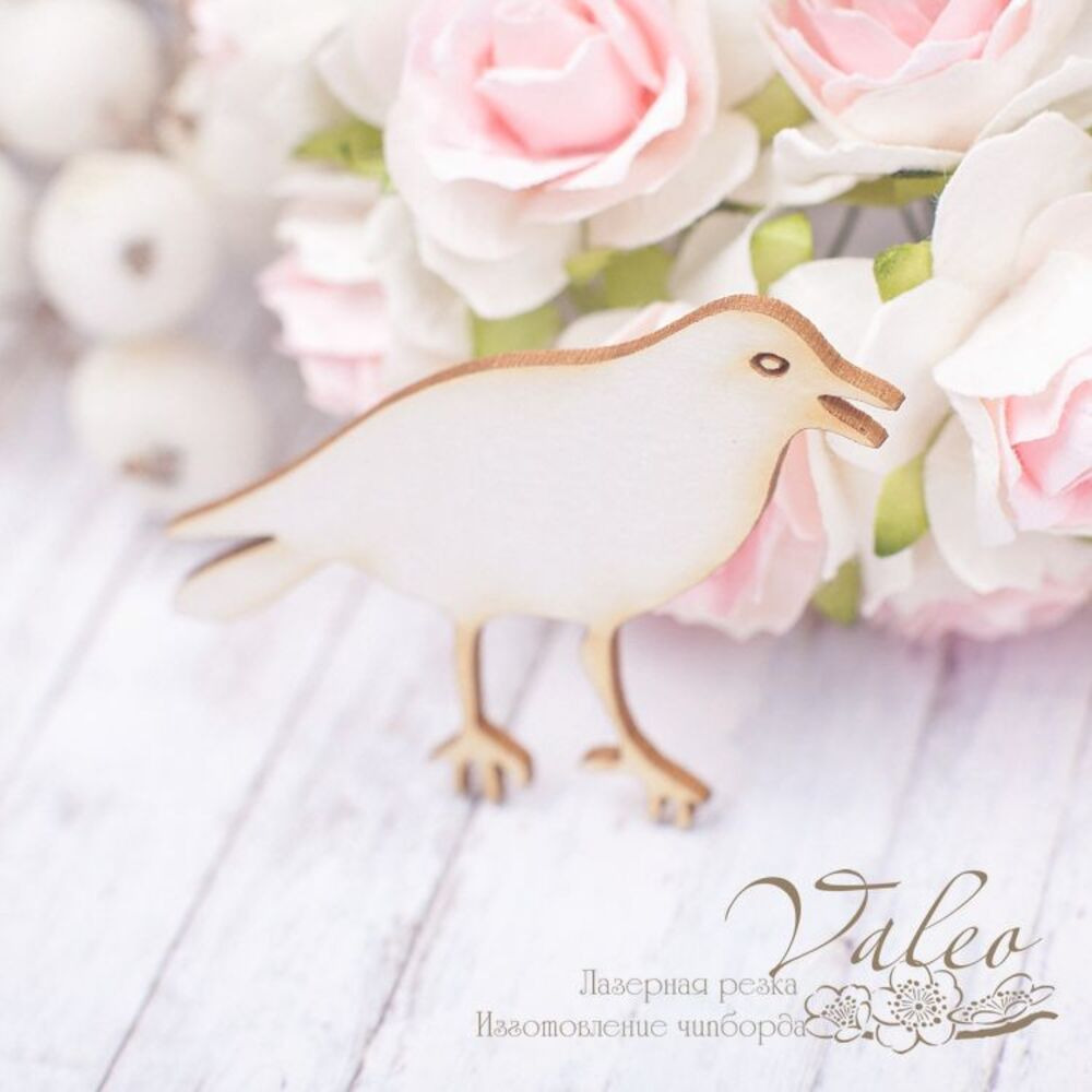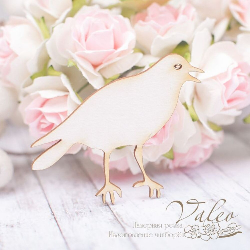 Чипборд Valeo Птица 48*41мм V1934 изготовлен из пивного картона молочного цвета. Толщина картона 1,5мм. Края чистые, светло коричневые. Применяется в качестве декоративных элементов при изготовлении альбомов, открыток, пригласительных
