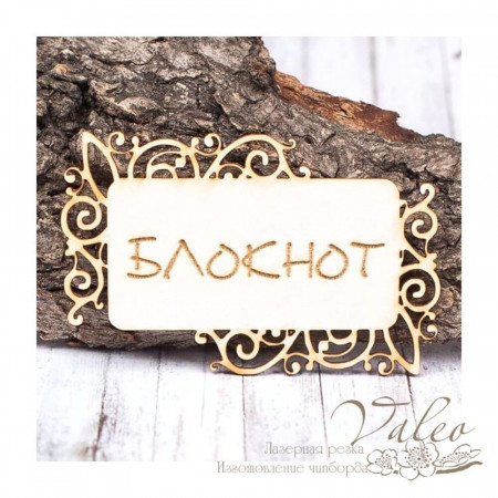 Чіпборд Valeo рамка Блокнот1 77*49мм V1440 виготовлений із пивного картону молочного кольору. Товщина картону 1,5 мм. Краї чисті, світло-коричневі. Застосовується як декоративні елементи при виготовленні альбомів, листівок, запрошень