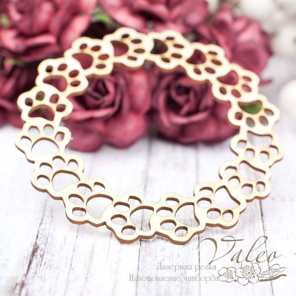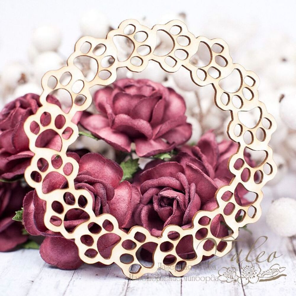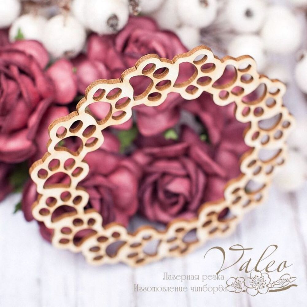 Чіпборд Valeo рамка Лапки 78*78мм V1639 виготовлений із пивного картону молочного кольору. Товщина картону 1,5 мм. Краї чисті, світло-коричневі. Застосовується як декоративні елементи при виготовленні альбомів, листівок, запрошень