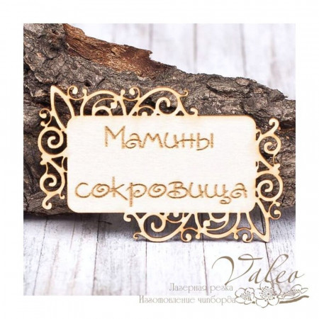 Чіпборд Valeo рамка Мамині скарби 77*49мм V1407 виготовлений із пивного картону молочного кольору. Товщина картону 1,5 мм. Краї чисті, світло-коричневі. Застосовується як декоративні елементи при виготовленні альбомів, листівок, запрошень