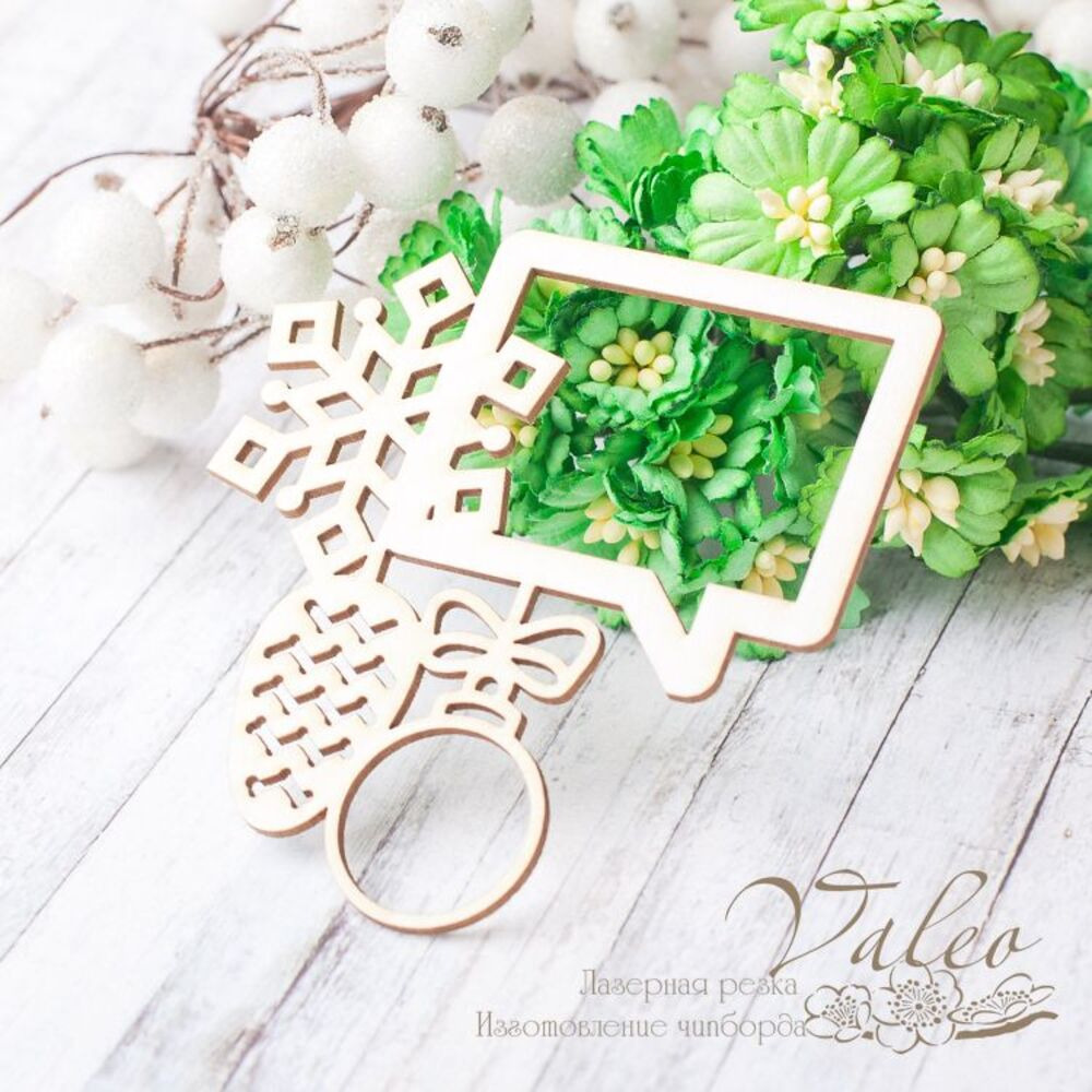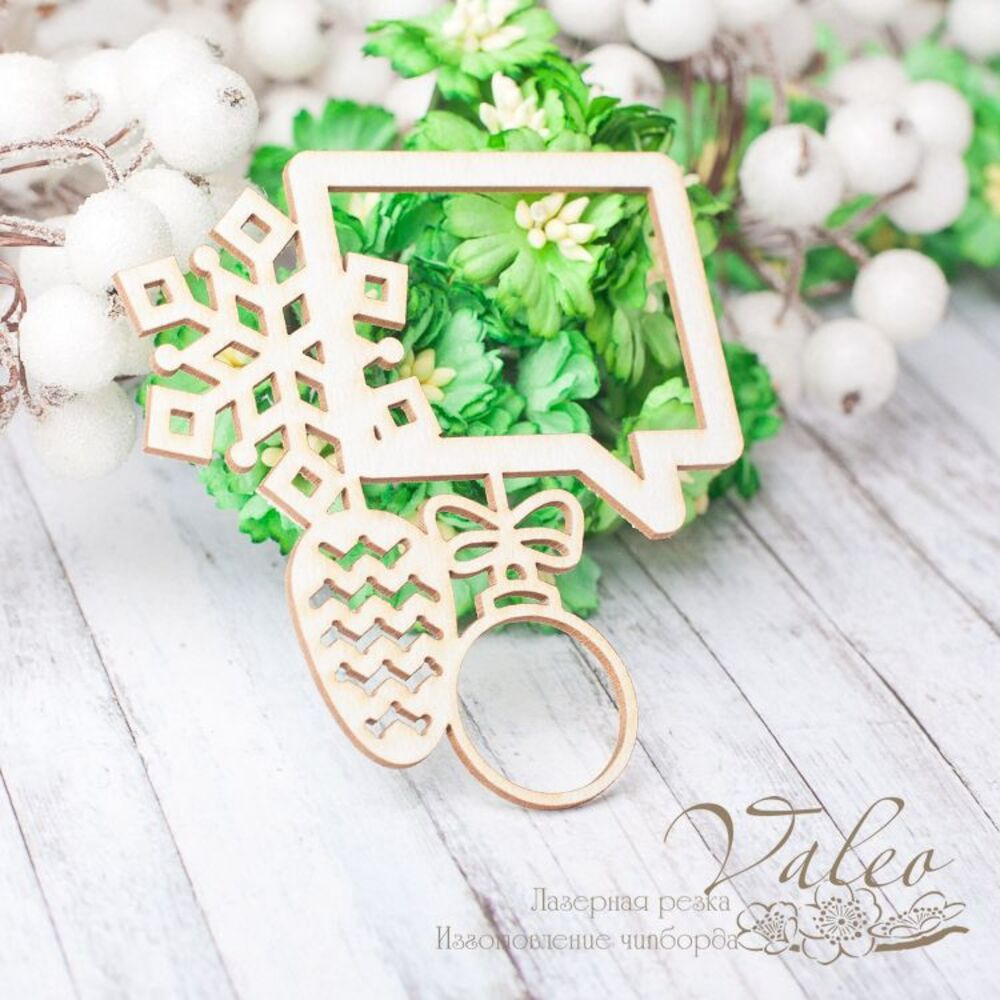 Чіпборд Valeo Новорічна рамка 72*76мм V2290 виготовлений з пивного картону молочного кольору. Товщина картону 1,5 мм. Краї чисті, світло-коричневі. Застосовується як декоративні елементи при виготовленні альбомів, листівок, запрошень
