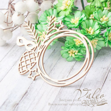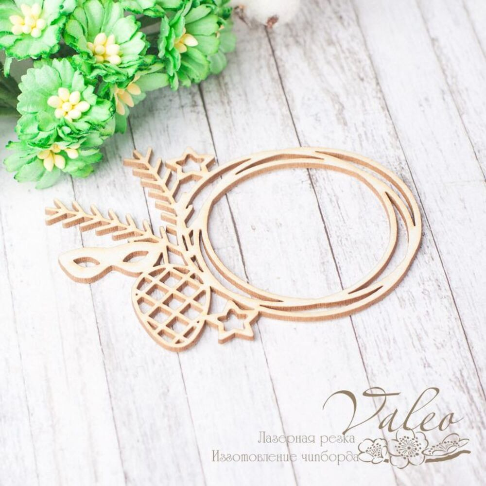 Чіпборд Valeo Новорічна рамка 82*62мм V2294 виготовлений з пивного картону молочного кольору. Товщина картону 1,5 мм. Краї чисті, світло-коричневі. Застосовується як декоративні елементи при виготовленні альбомів, листівок, запрошень
