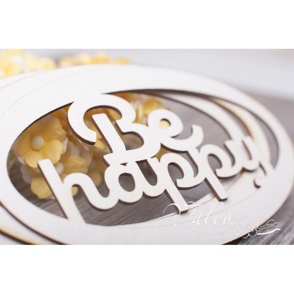 Чіпборд Valeo Рамка шейкер Be happy 105*65мм V3117 виготовлений із пивного картону молочного кольору. Товщина картону 1,5 мм. Краї чисті, світло-коричневі. Застосовується як декоративні елементи при виготовленні альбомів, листівок, запрошень