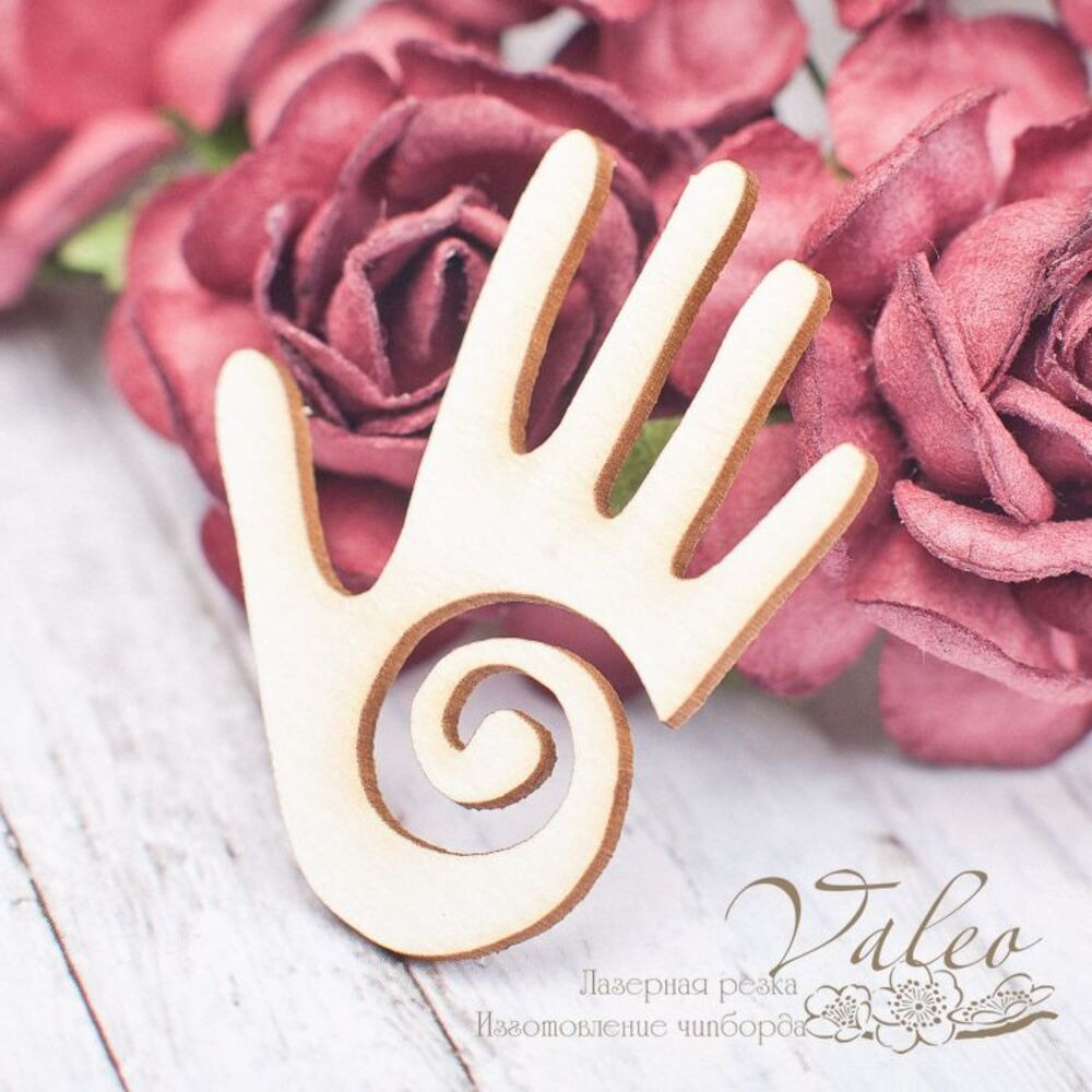 Чіпборд Valeo Рука 31*40мм V1757 виготовлений із пивного картону молочного кольору. Товщина картону 1,5 мм. Краї чисті, світло-коричневі. Застосовується як декоративні елементи при виготовленні альбомів, листівок, запрошень