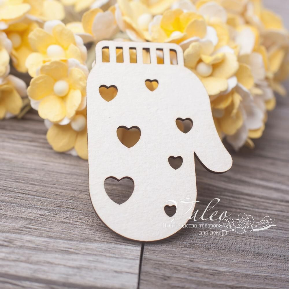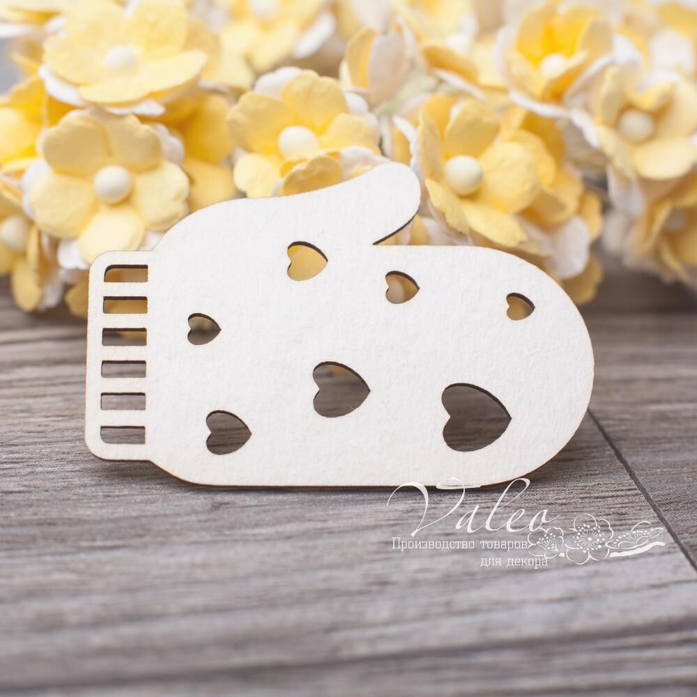 Чіпборд Valeo Варіжка 33*49мм V3131 виготовлений із пивного картону молочного кольору. Товщина картону 1,5 мм. Краї чисті, світло-коричневі. Застосовується як декоративні елементи при виготовленні альбомів, листівок, запрошень