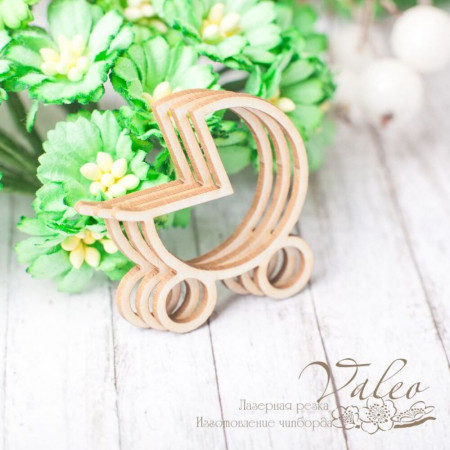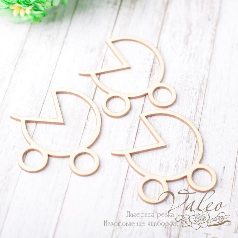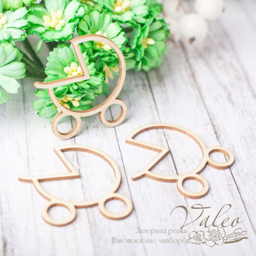 Чіпборд Valeo шейкер Коляска 3шт 35*37мм V2377 виготовлений із пивного картону молочного кольору. Товщина картону 1,5 мм. Краї чисті, світло-коричневі. Застосовується як декоративні елементи при виготовленні альбомів, листівок, запрошень