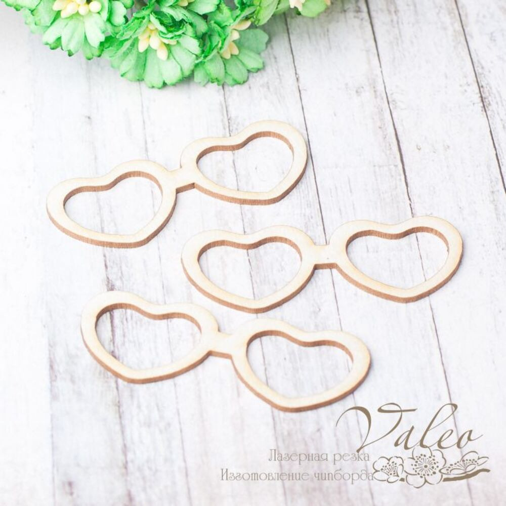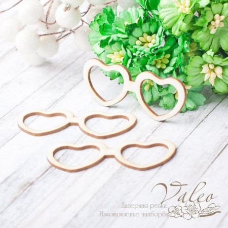Чіпборд Valeo шейкер Окуляри 3шт 55*21мм V2367 виготовлений із пивного картону молочного кольору. Товщина картону 1,5 мм. Краї чисті, світло-коричневі. Застосовується як декоративні елементи при виготовленні альбомів, листівок, запрошень