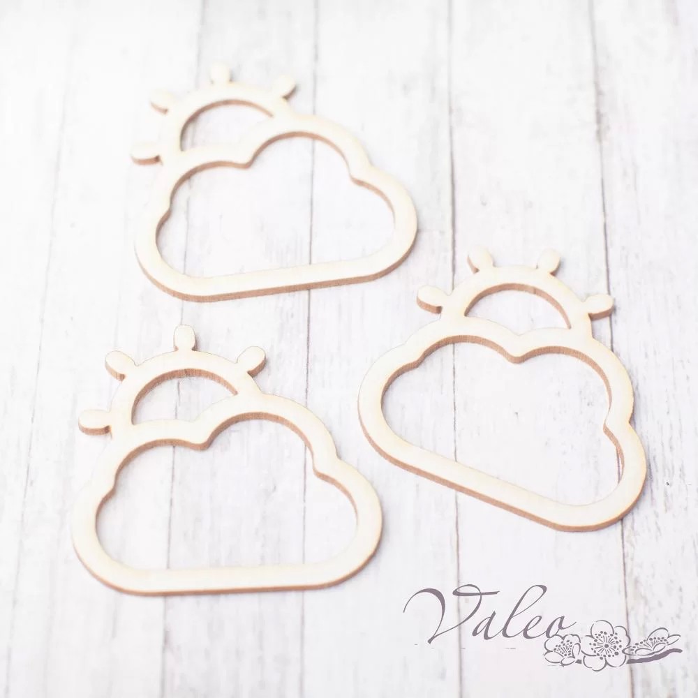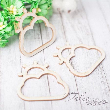 Чіпборд Valeo шейкер Тучки 3шт 36*36мм V2371 виготовлений із пивного картону молочного кольору. Товщина картону 1,5 мм. Краї чисті, світло-коричневі. Застосовується як декоративні елементи при виготовленні альбомів, листівок, запрошень