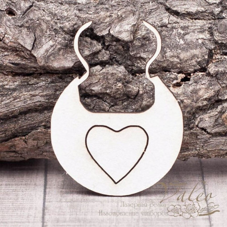 Чіпборд Valeo Слюнявчик 33*44мм V1326 виготовлений із пивного картону молочного кольору. Товщина картону 1,5 мм. Краї чисті, світло-коричневі. Застосовується як декоративні елементи при виготовленні альбомів, листівок, запрошень
