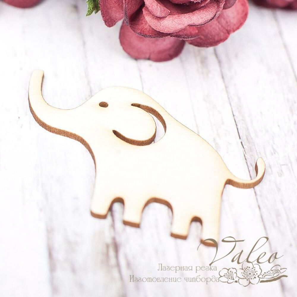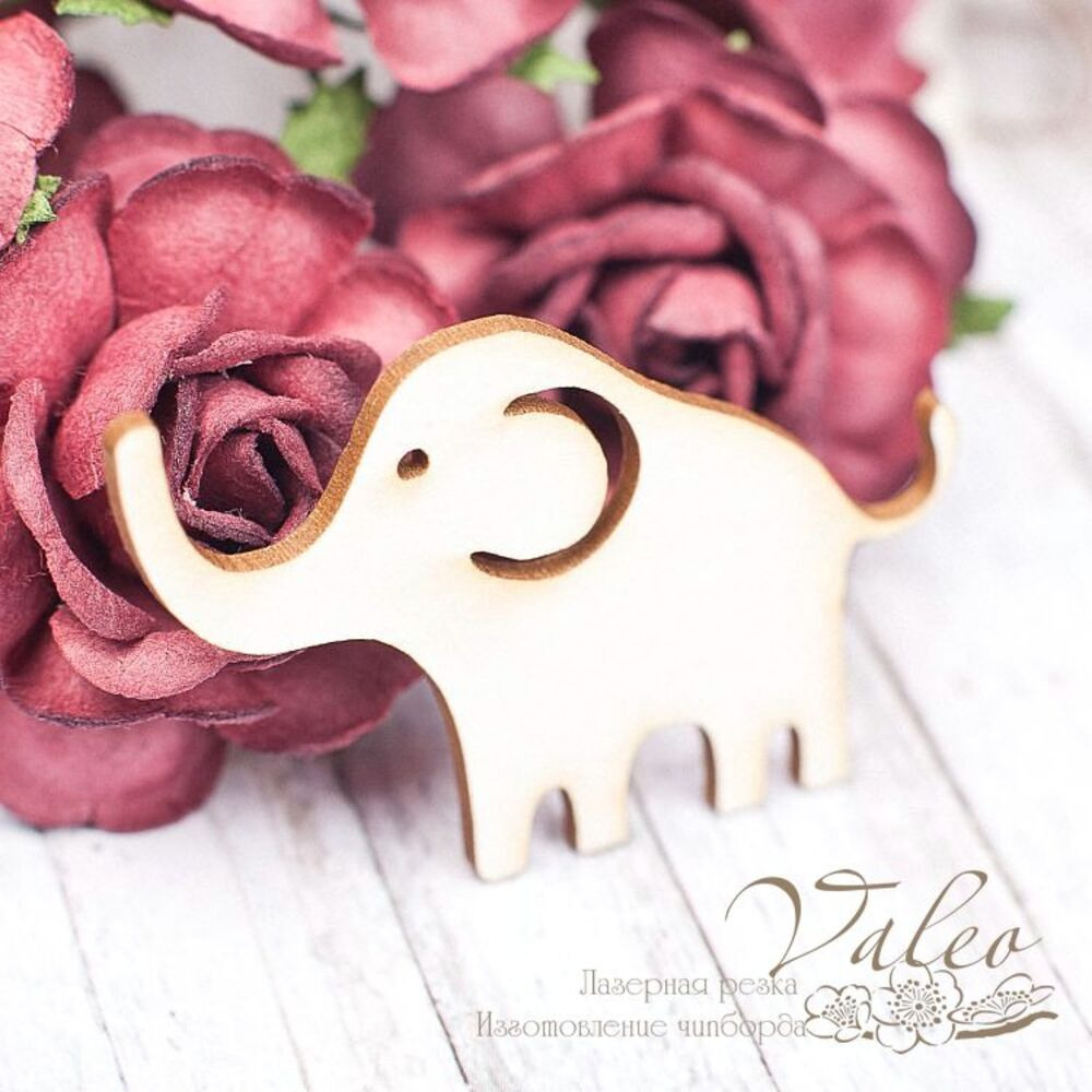 Чипборд Valeo Слоник 49*33мм V1646 изготовлен из пивного картона молочного цвета. Толщина картона 1,5мм. Края чистые, светло коричневые. Применяется в качестве декоративных элементов при изготовлении альбомов, открыток, пригласительных