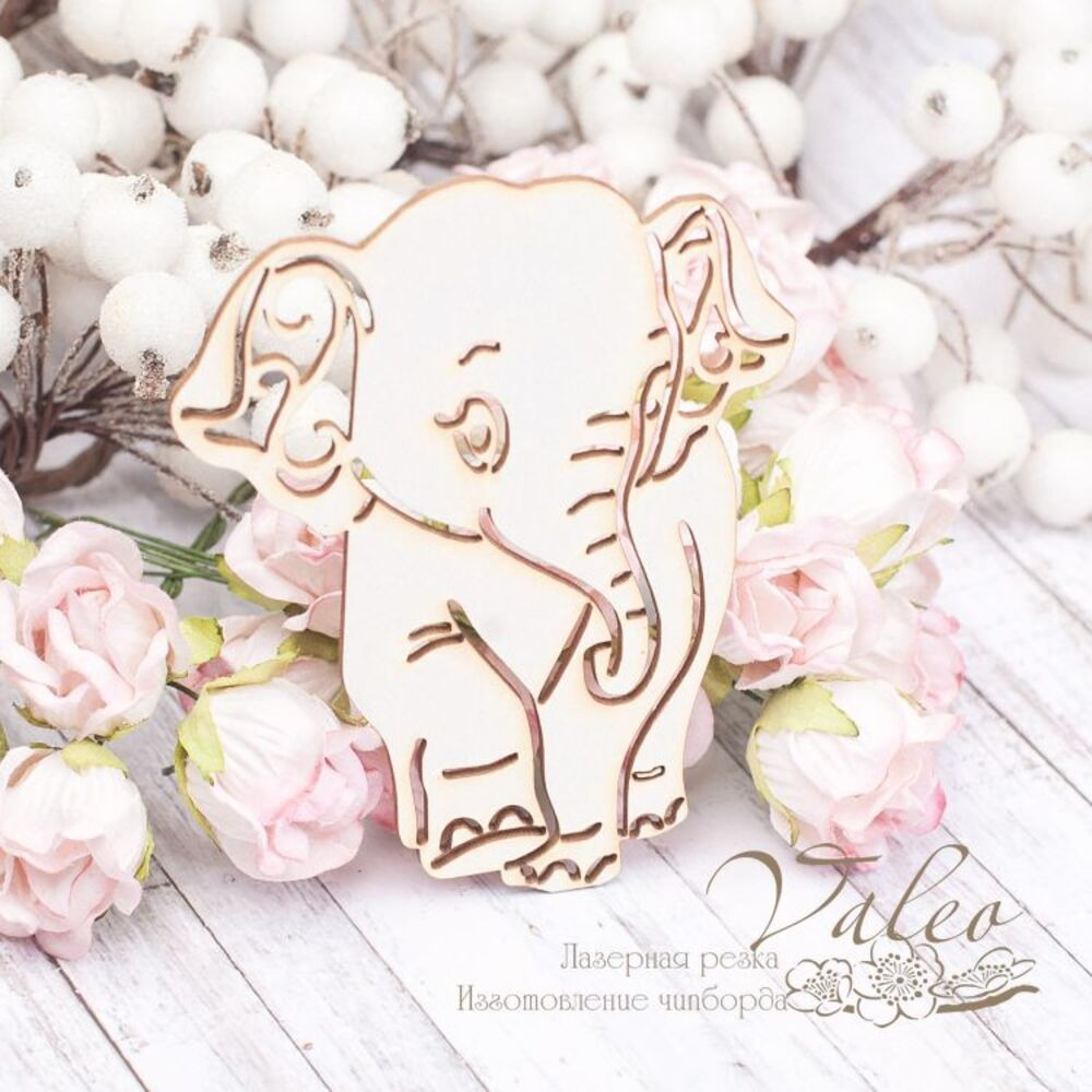 Чіпборд Valeo Слонік 69*88мм V2013 виготовлений із пивного картону молочного кольору. Товщина картону 1,5 мм. Краї чисті, світло-коричневі. Застосовується як декоративні елементи при виготовленні альбомів, листівок, запрошень