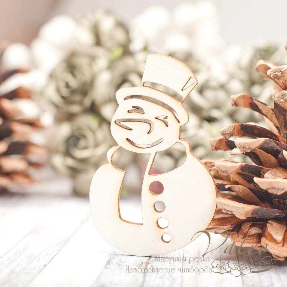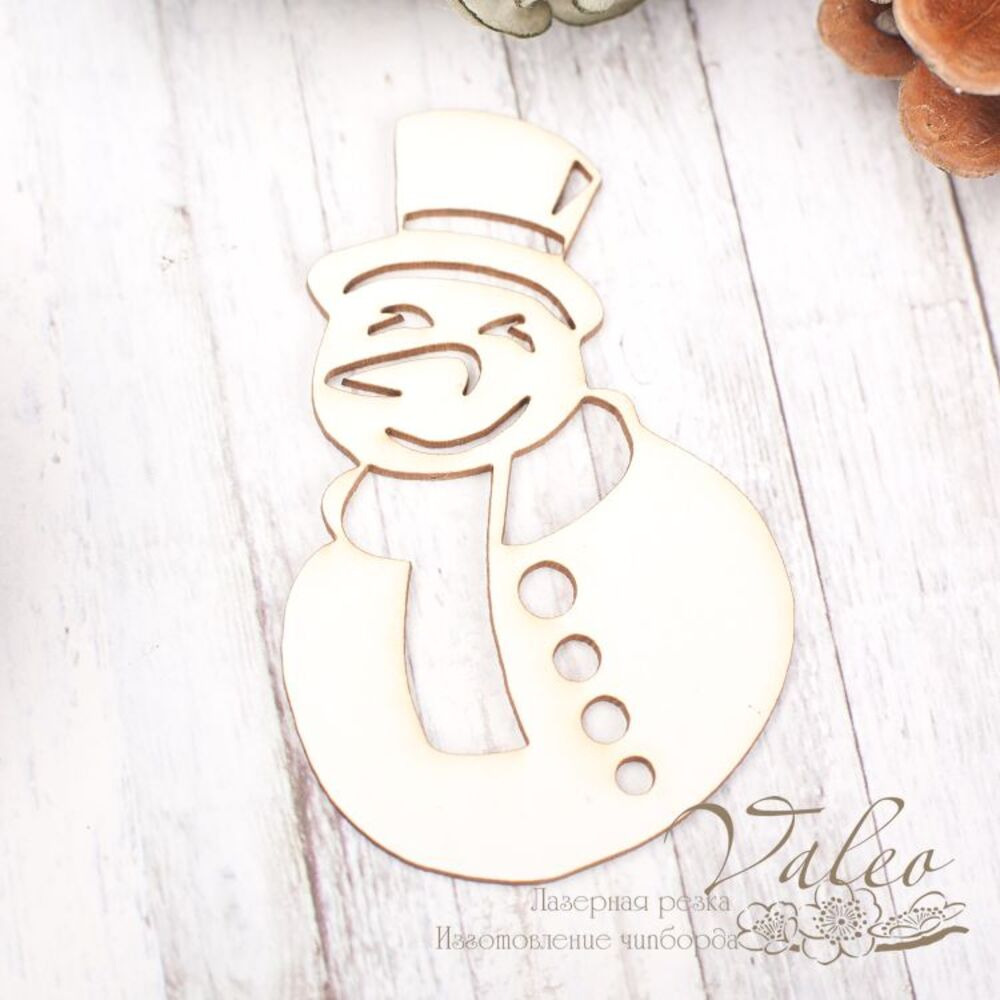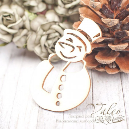Чіпборд Valeo Сніговик 40*61мм V2039 виготовлений із пивного картону молочного кольору. Товщина картону 1,5 мм. Краї чисті, світло-коричневі. Застосовується як декоративні елементи при виготовленні альбомів, листівок, запрошень