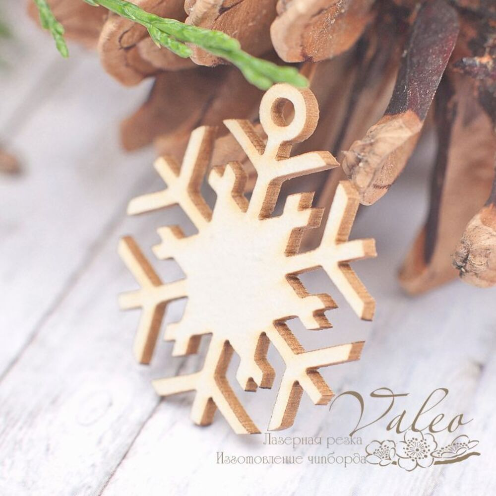 Чіпборд Valeo Сніжинка 28*32мм V1985 виготовлений із пивного картону молочного кольору. Товщина картону 1,5 мм. Краї чисті, світло-коричневі. Застосовується як декоративні елементи при виготовленні альбомів, листівок, запрошень