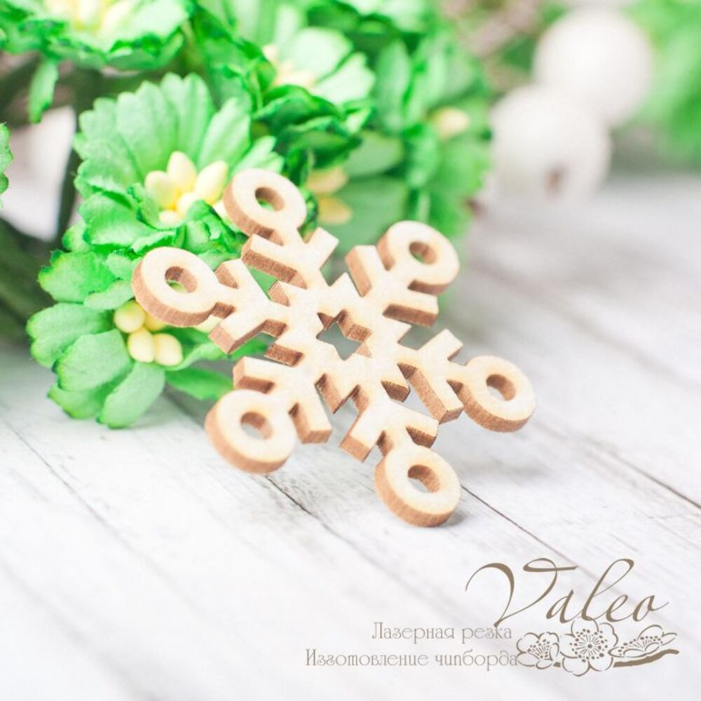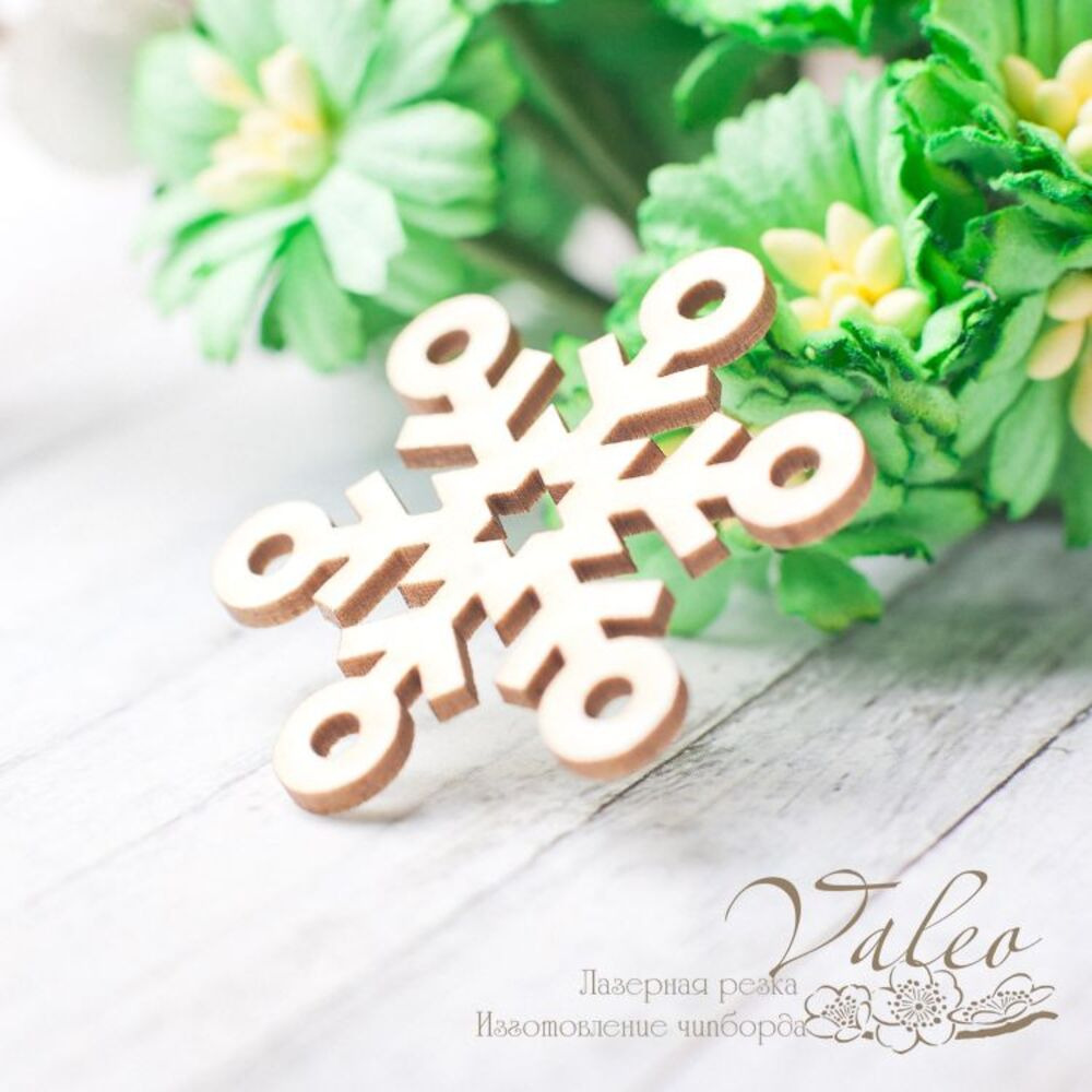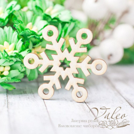 Чіпборд Valeo Сніжинка 32*36мм V2303 виготовлений із пивного картону молочного кольору. Товщина картону 1,5 мм. Краї чисті, світло-коричневі. Застосовується як декоративні елементи при виготовленні альбомів, листівок, запрошень