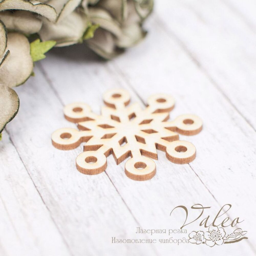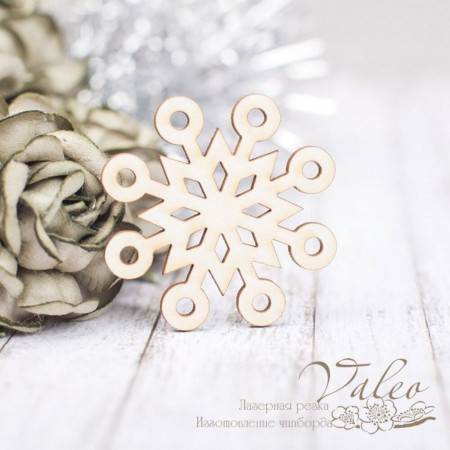 Чіпборд Valeo Сніжинка 35*35мм V2262 виготовлений із пивного картону молочного кольору. Товщина картону 1,5 мм. Краї чисті, світло-коричневі. Застосовується як декоративні елементи при виготовленні альбомів, листівок, запрошень