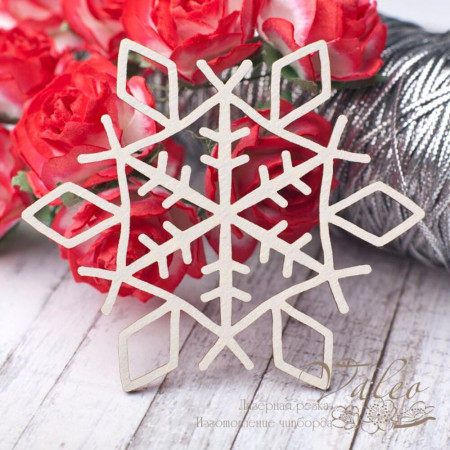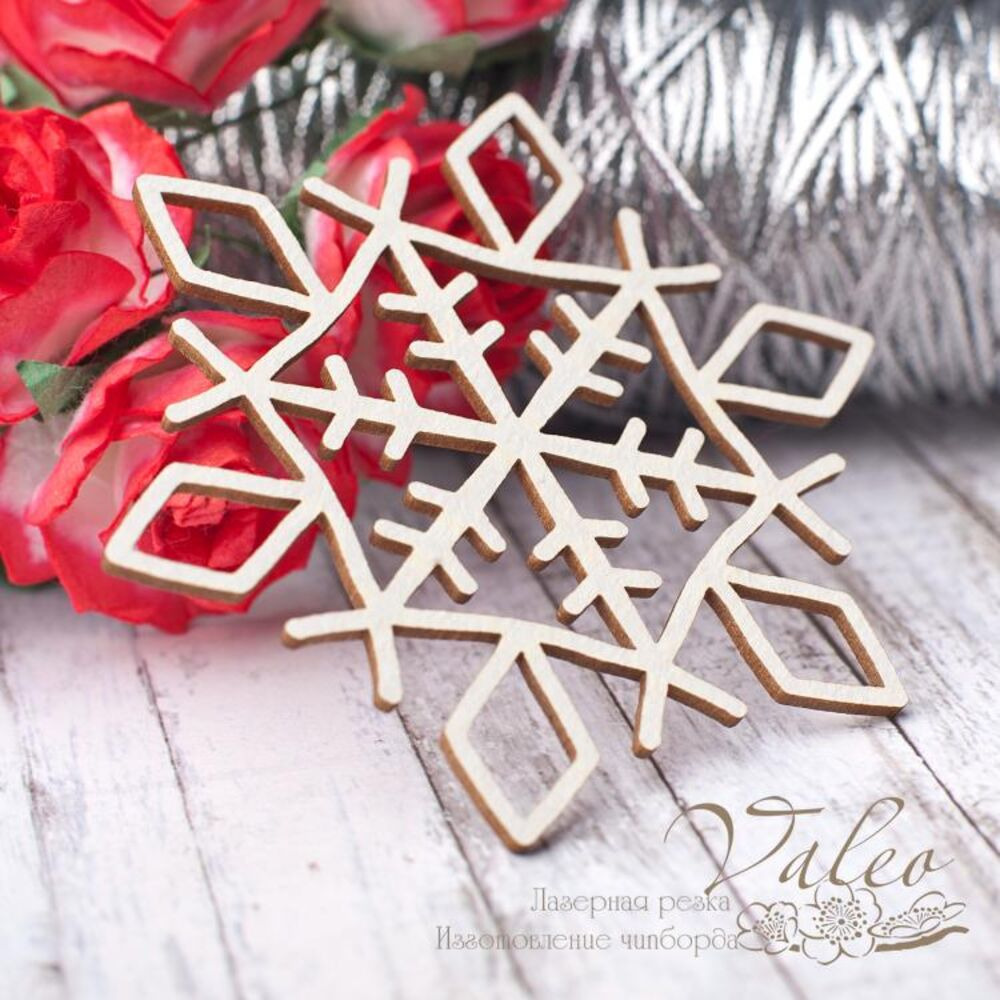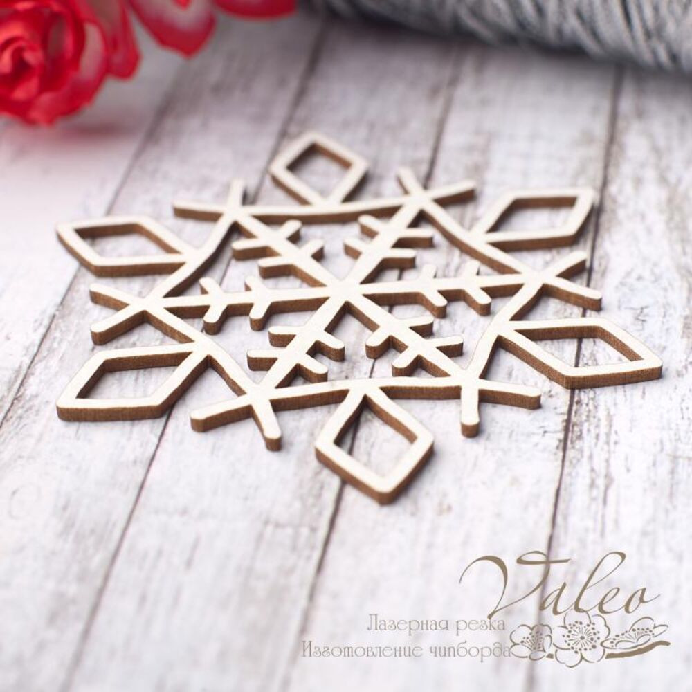 Чіпборд Valeo Сніжинка 59*67мм V2807 виготовлений із пивного картону молочного кольору. Товщина картону 1,5 мм. Краї чисті, світло-коричневі. Застосовується як декоративні елементи при виготовленні альбомів, листівок, запрошень