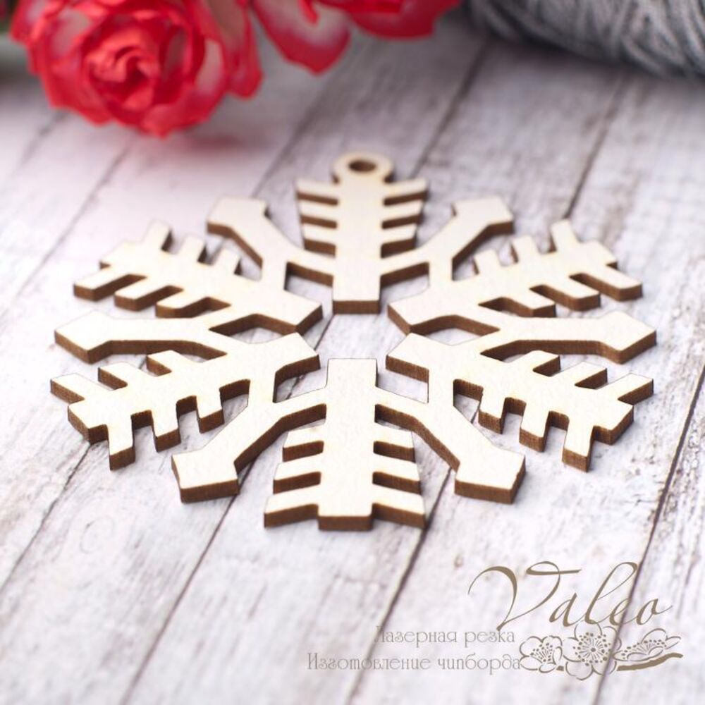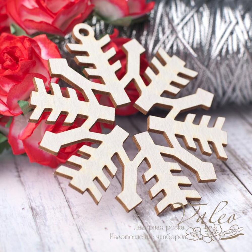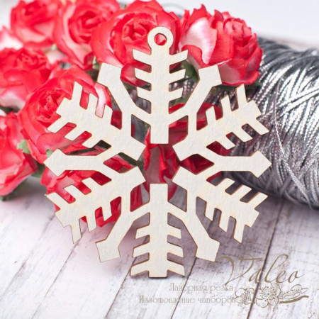 Чіпборд Valeo Сніжинка 60*65мм V2795 виготовлений із пивного картону молочного кольору. Товщина картону 1,5 мм. Краї чисті, світло-коричневі. Застосовується як декоративні елементи при виготовленні альбомів, листівок, запрошень