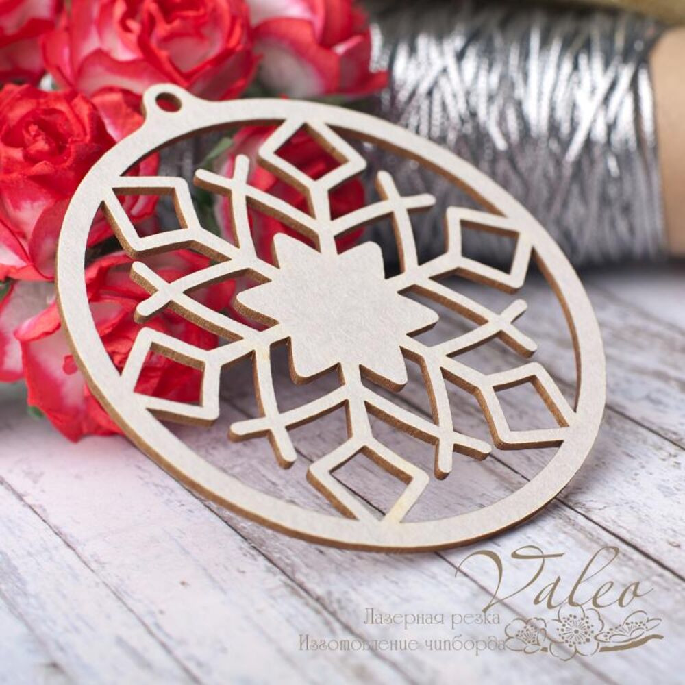 Чіпборд Valeo Сніжинка 65*67мм V2786 виготовлений із пивного картону молочного кольору. Товщина картону 1,5 мм. Краї чисті, світло-коричневі. Застосовується як декоративні елементи при виготовленні альбомів, листівок, запрошень