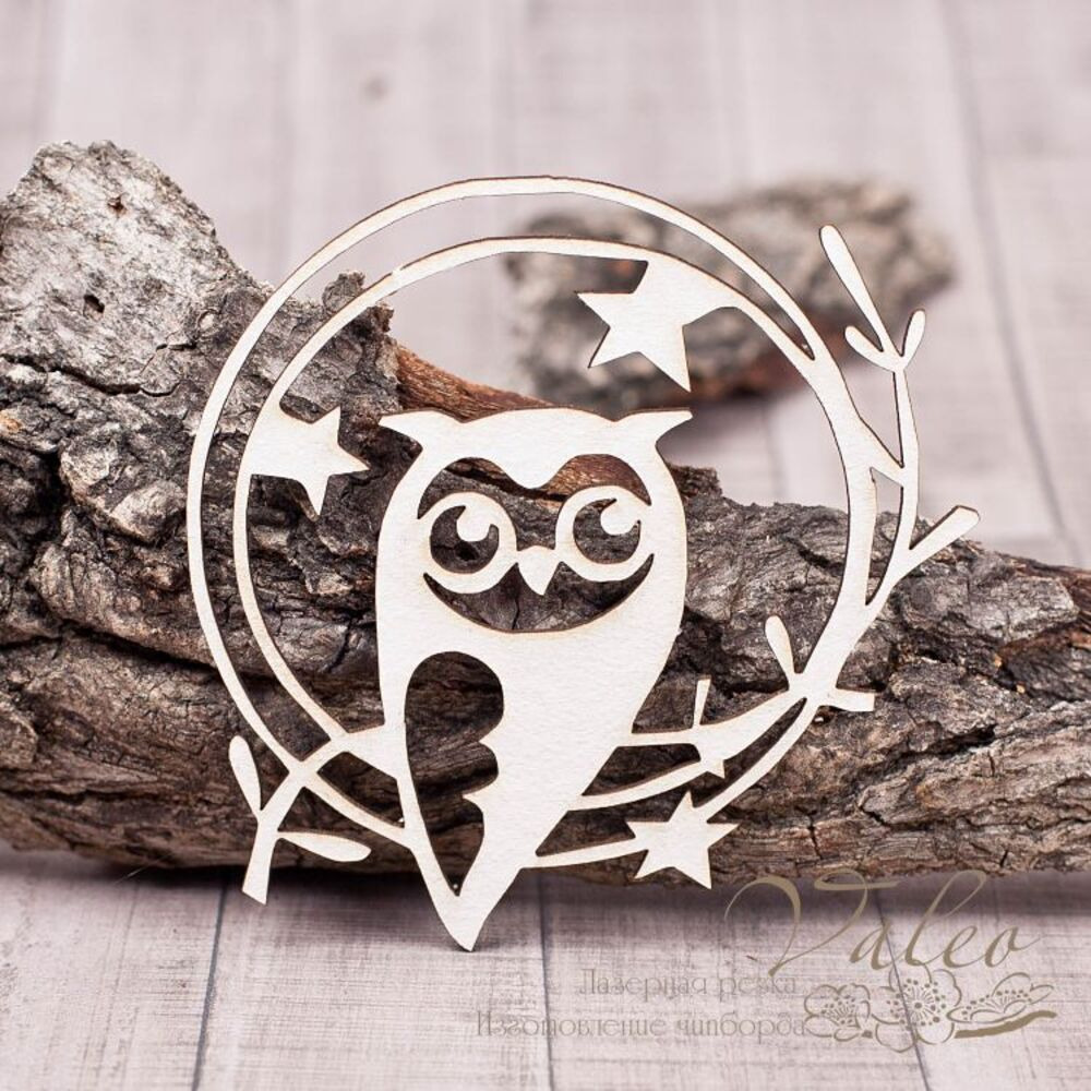 Чіпборд Valeo Сова на гілці 60*60мм V1201 виготовлений із пивного картону молочного кольору. Товщина картону 1,5 мм. Краї чисті, світло-коричневі. Застосовується як декоративні елементи при виготовленні альбомів, листівок, запрошень