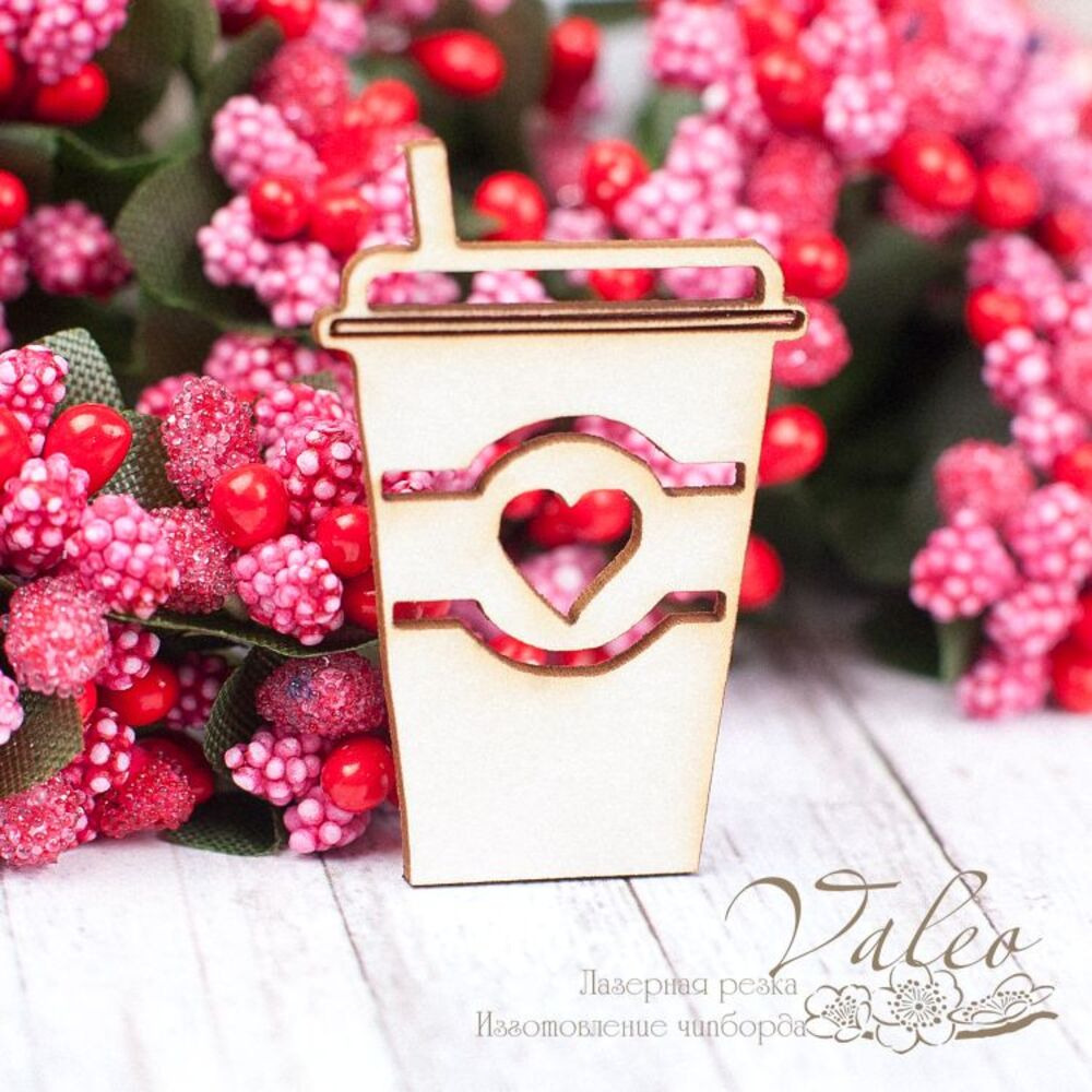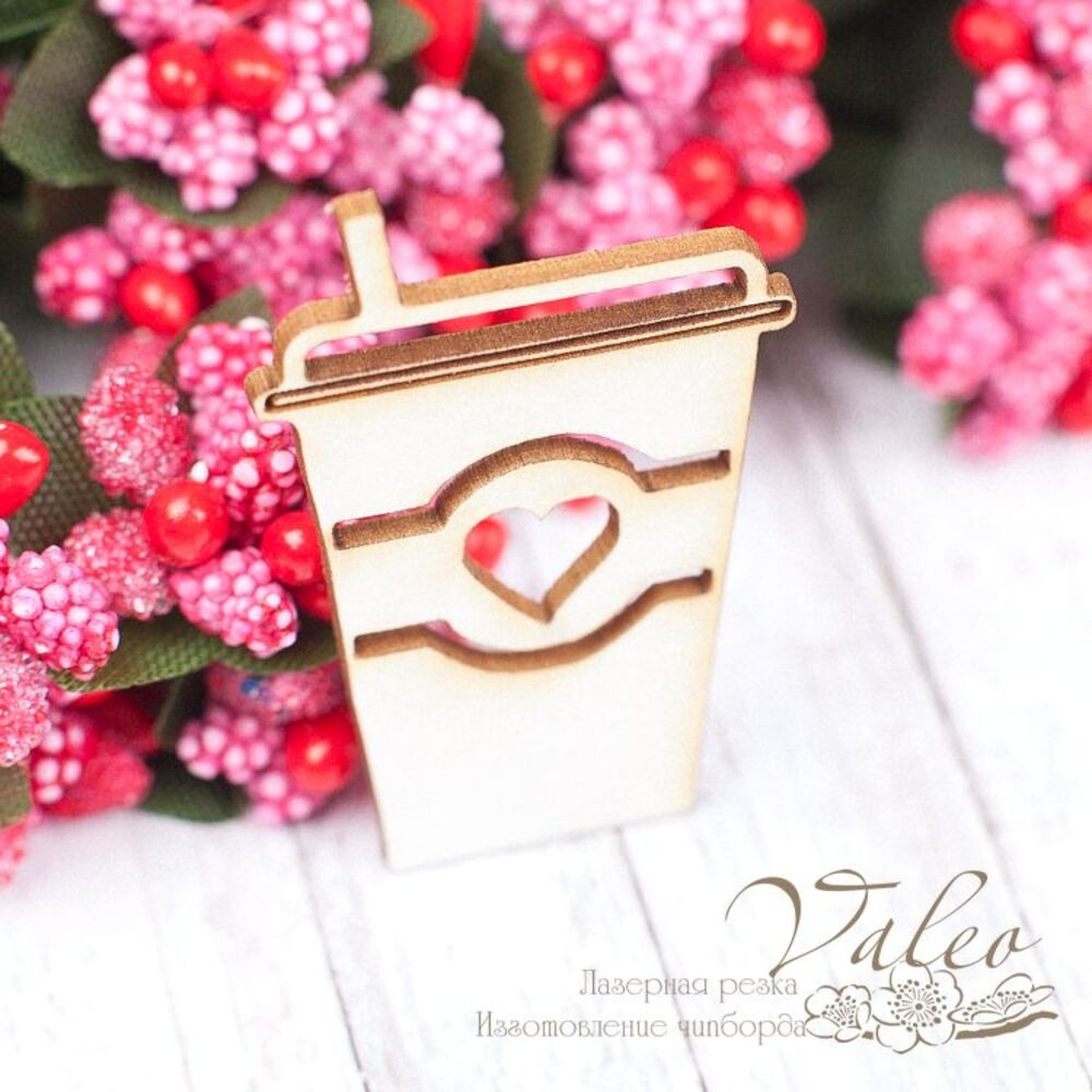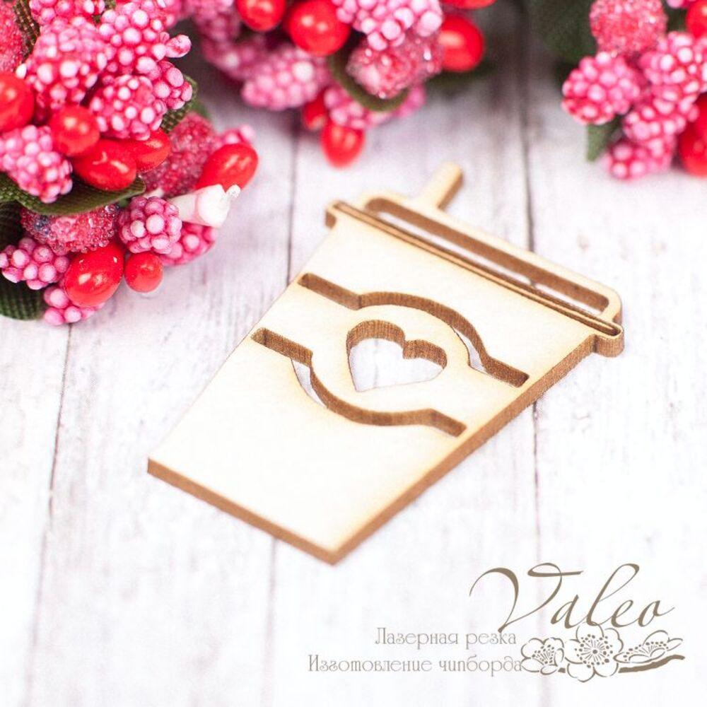 Чипборд Valeo Стаканчик кави 26*39мм V1525 виготовлений із пивного картону молочного кольору. Товщина картону 1,5 мм. Краї чисті, світло-коричневі. Застосовується як декоративні елементи при виготовленні альбомів, листівок, запрошень