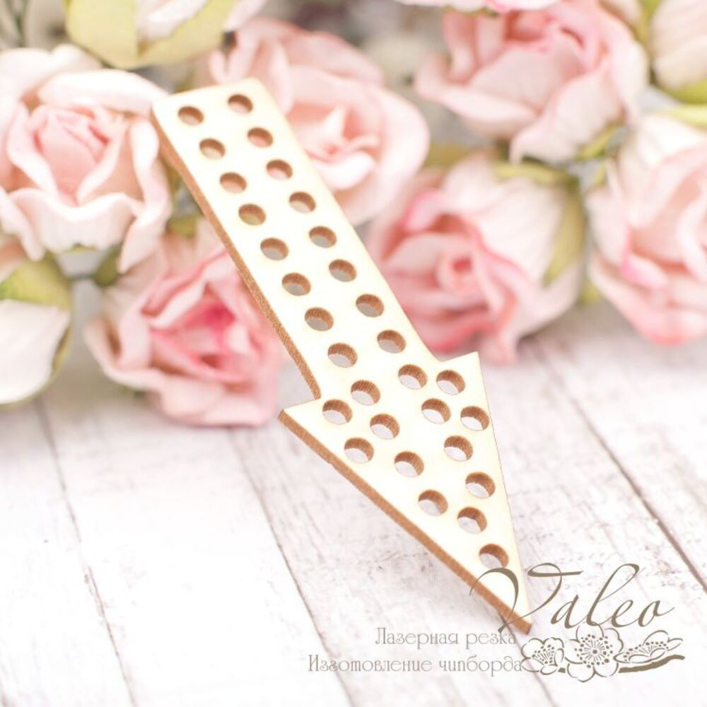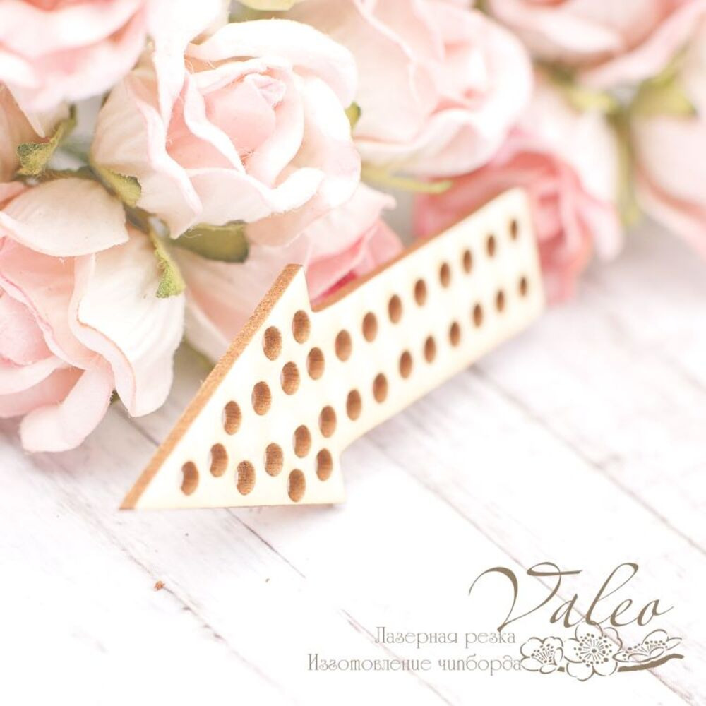 Чіпборд Valeo Стрілка 21*62мм V2045 виготовлений із пивного картону молочного кольору. Товщина картону 1,5 мм. Краї чисті, світло-коричневі. Застосовується як декоративні елементи при виготовленні альбомів, листівок, запрошень