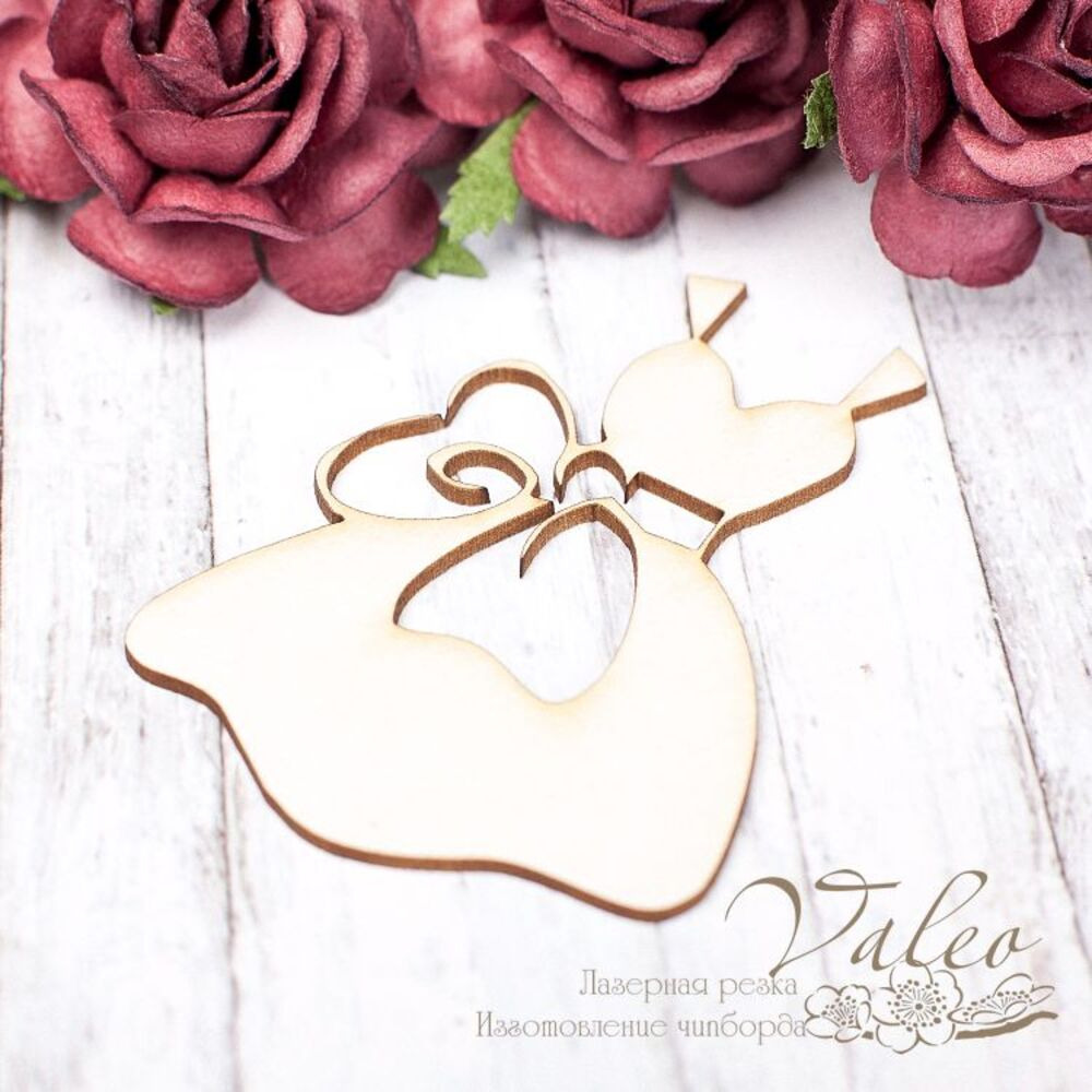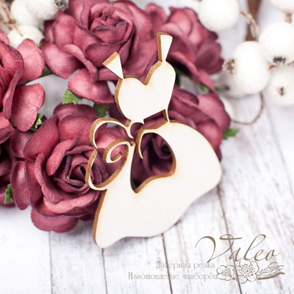 Чіпборд Valeo Сукня 64*7мм V1697 виготовлена з пивного картону молочного кольору. Товщина картону 1,5 мм. Краї чисті, світло-коричневі. Застосовується як декоративні елементи при виготовленні альбомів, листівок, запрошень