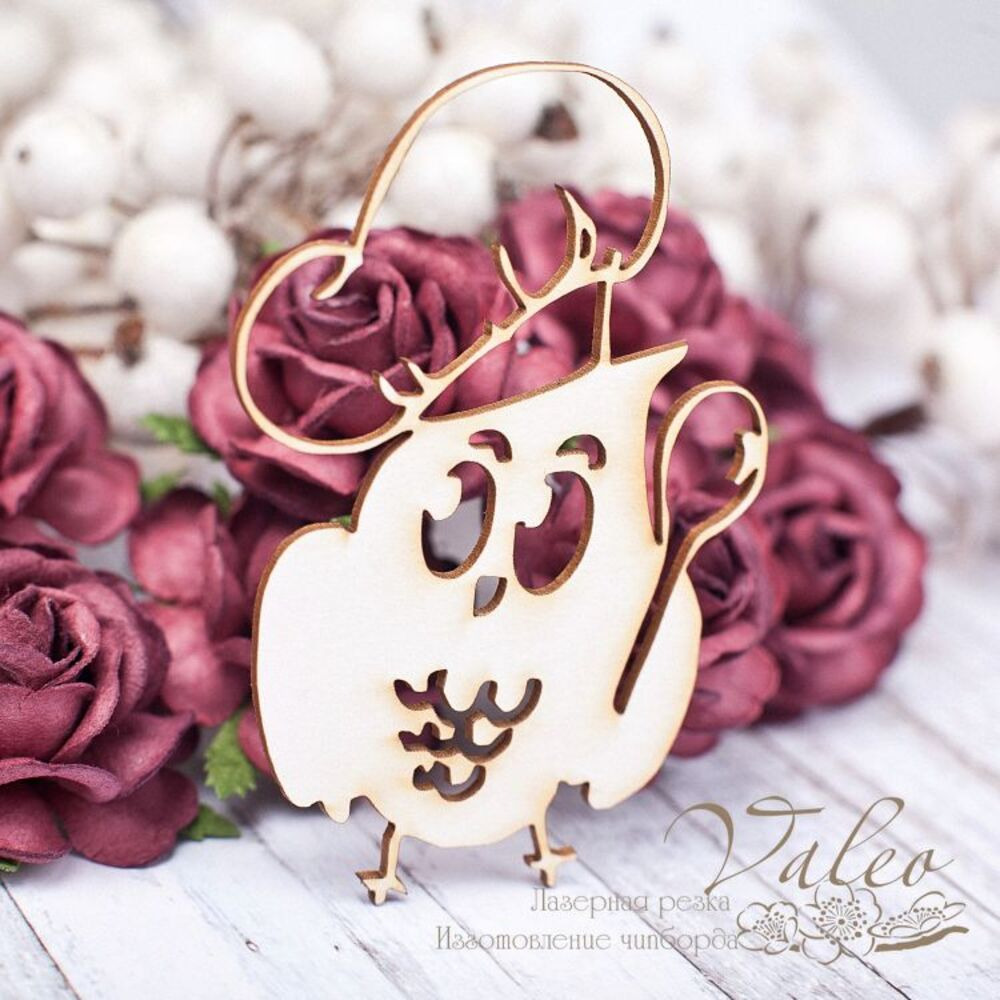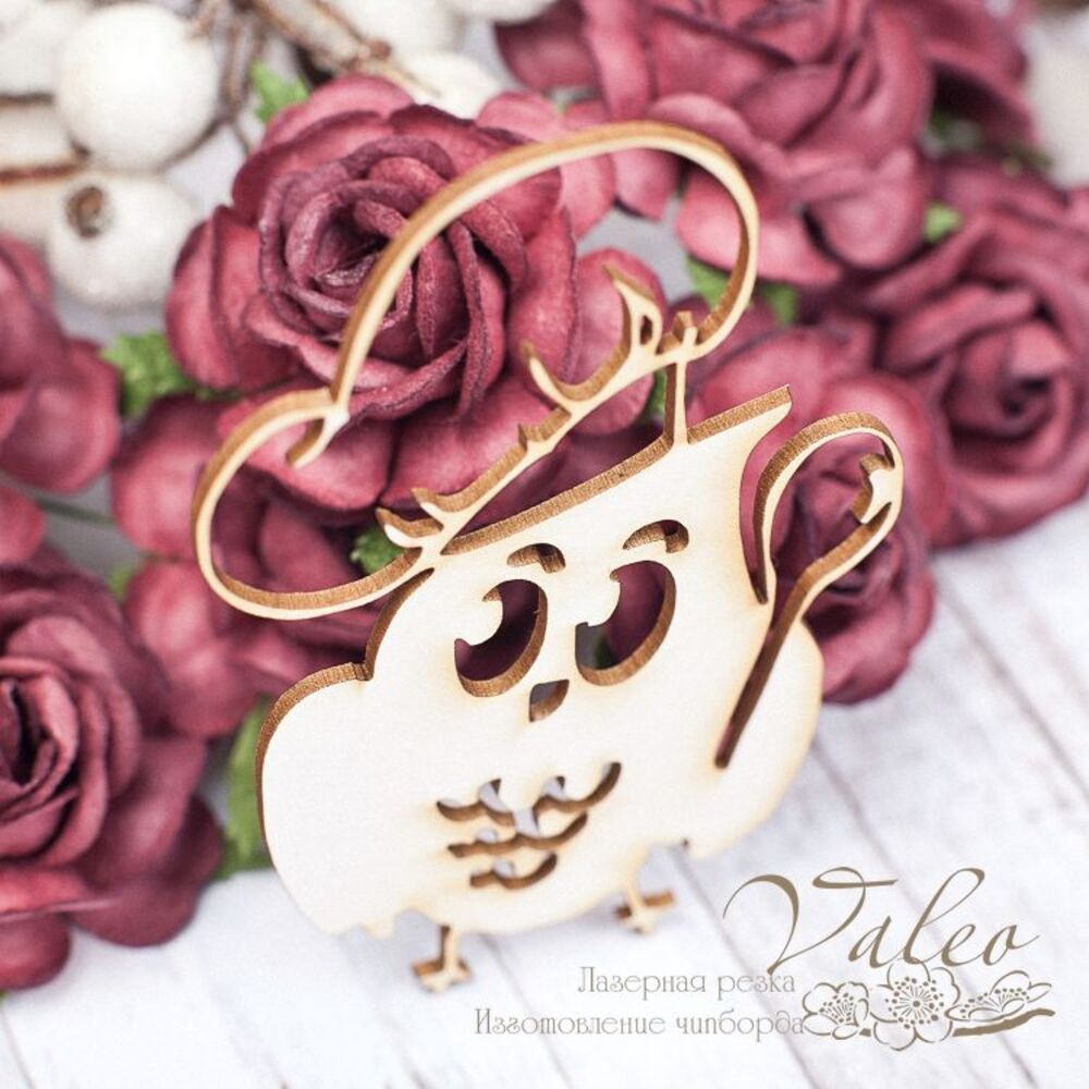 Чіпборд Valeo Совушка 52*77мм V1689 виготовлена з пивного картону молочного кольору. Товщина картону 1,5 мм. Краї чисті, світло-коричневі. Застосовується як декоративні елементи при виготовленні альбомів, листівок, запрошень