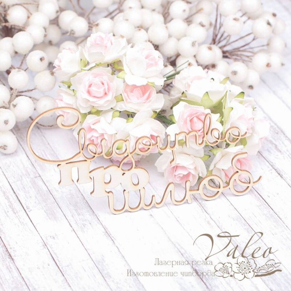 Чіпборд Valeo Свідоцтво про шлюб 126*67мм V1949 виготовлено з пивного картону молочного кольору. Товщина картону 1,5 мм. Краї чисті, світло-коричневі. Застосовується як декоративні елементи при виготовленні альбомів, листівок, запрошень