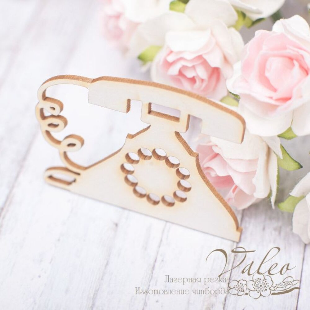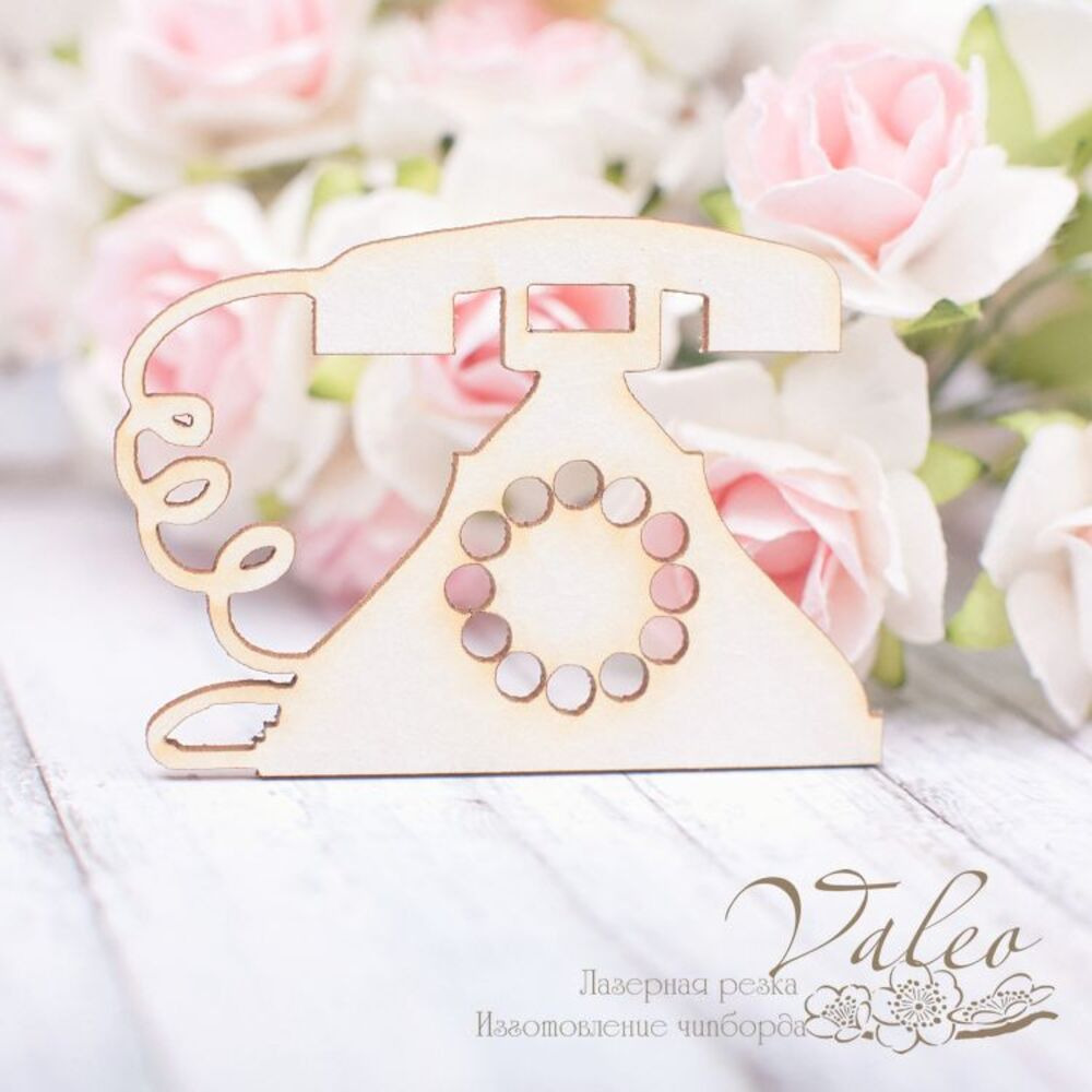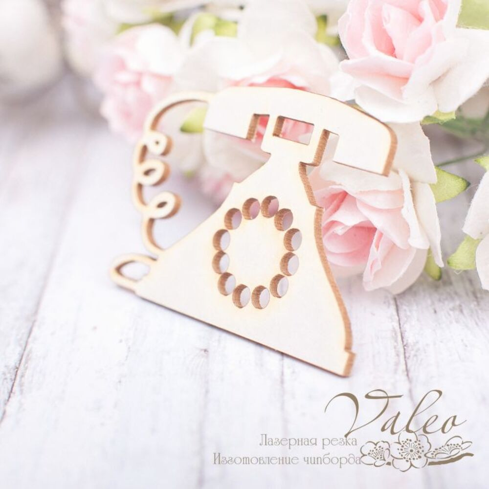 Чіпборд Valeo Телефон 51*36мм V1895 виготовлений із пивного картону молочного кольору. Товщина картону 1,5 мм. Краї чисті, світло-коричневі.Застосовується як декоративні елементи при виготовленні альбомів, листівок, запрошень