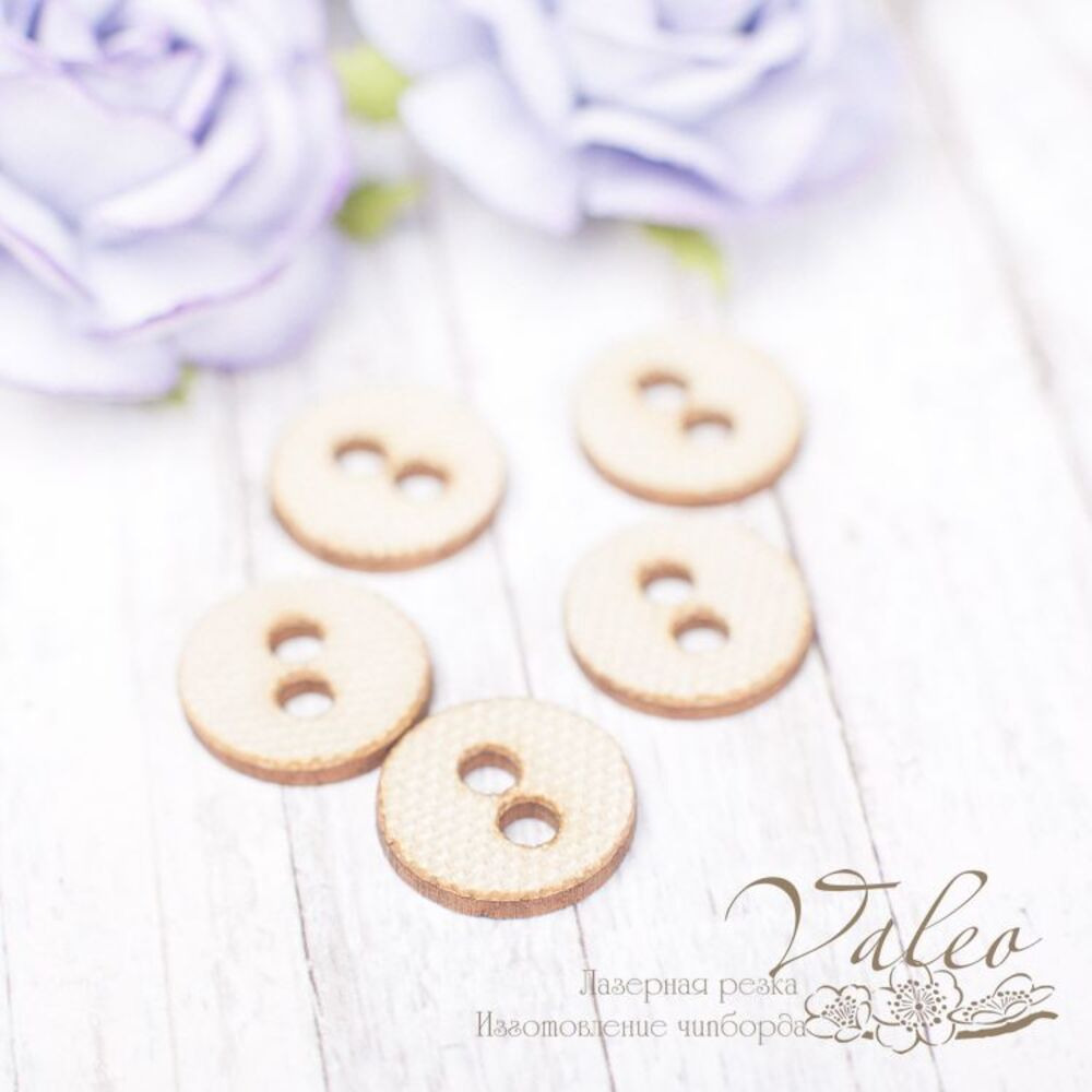 Чіпборд Valeo тканинний набір Ґудзики 5шт бежевий 15*15мм V2172 виготовлений з пивного картону молочного кольору. Товщина картону 1,5 мм. Краї чисті, світло-коричневі. Застосовується як декоративні елементи при виготовленні альбомів, листівок, запрошень
