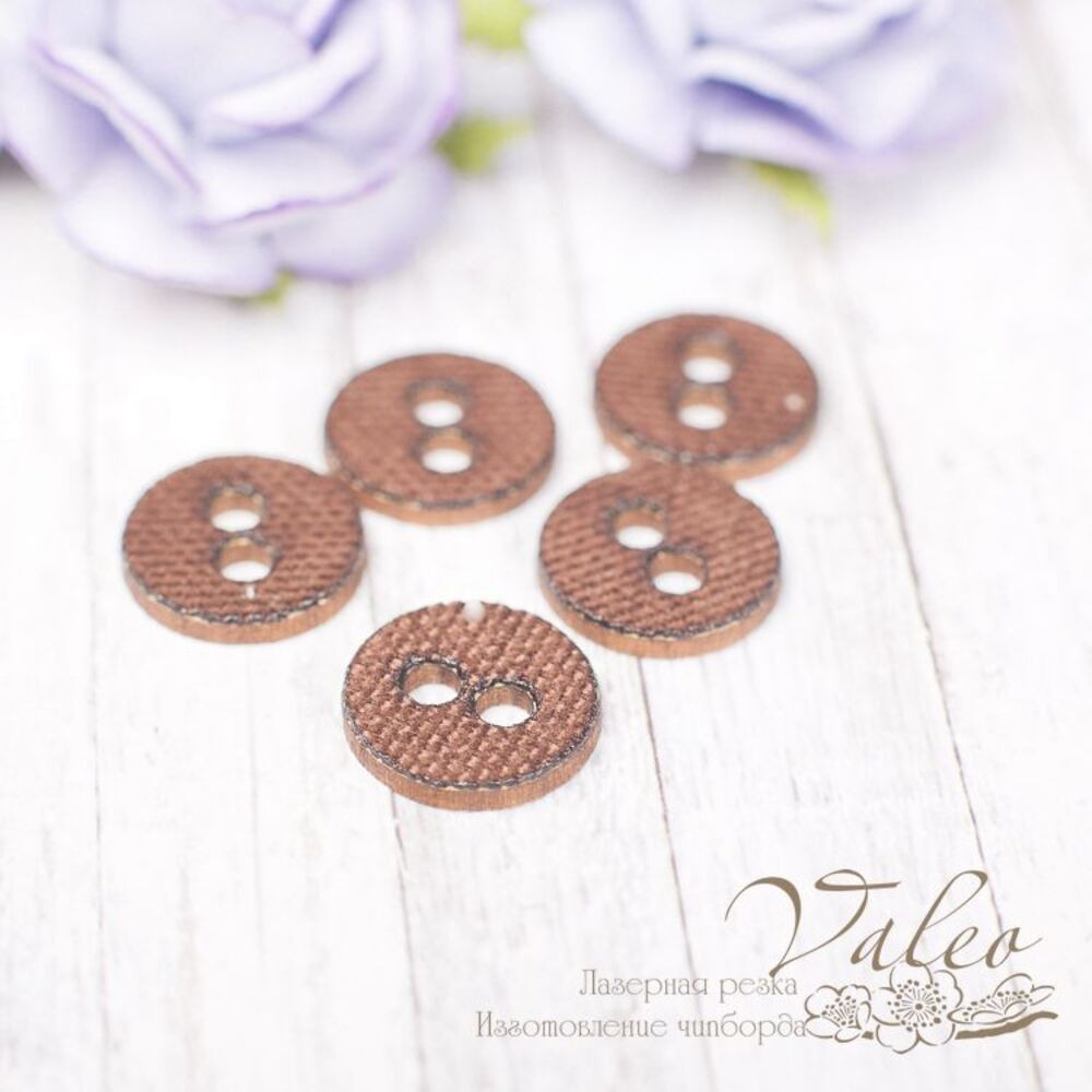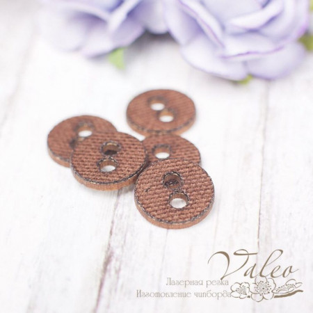 Чіпборд Valeo тканинний набір Ґудзики коричневий 15*15мм 5шт V2176 виготовлений з пивного картону молочного кольору. Товщина картону 1,5 мм. Краї чисті, світло-коричневі. Застосовується як декоративні елементи при виготовленні альбомів, листівок, запрошень