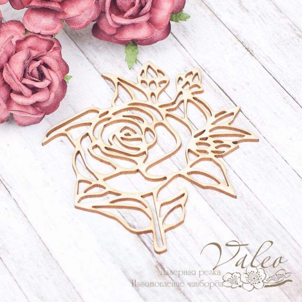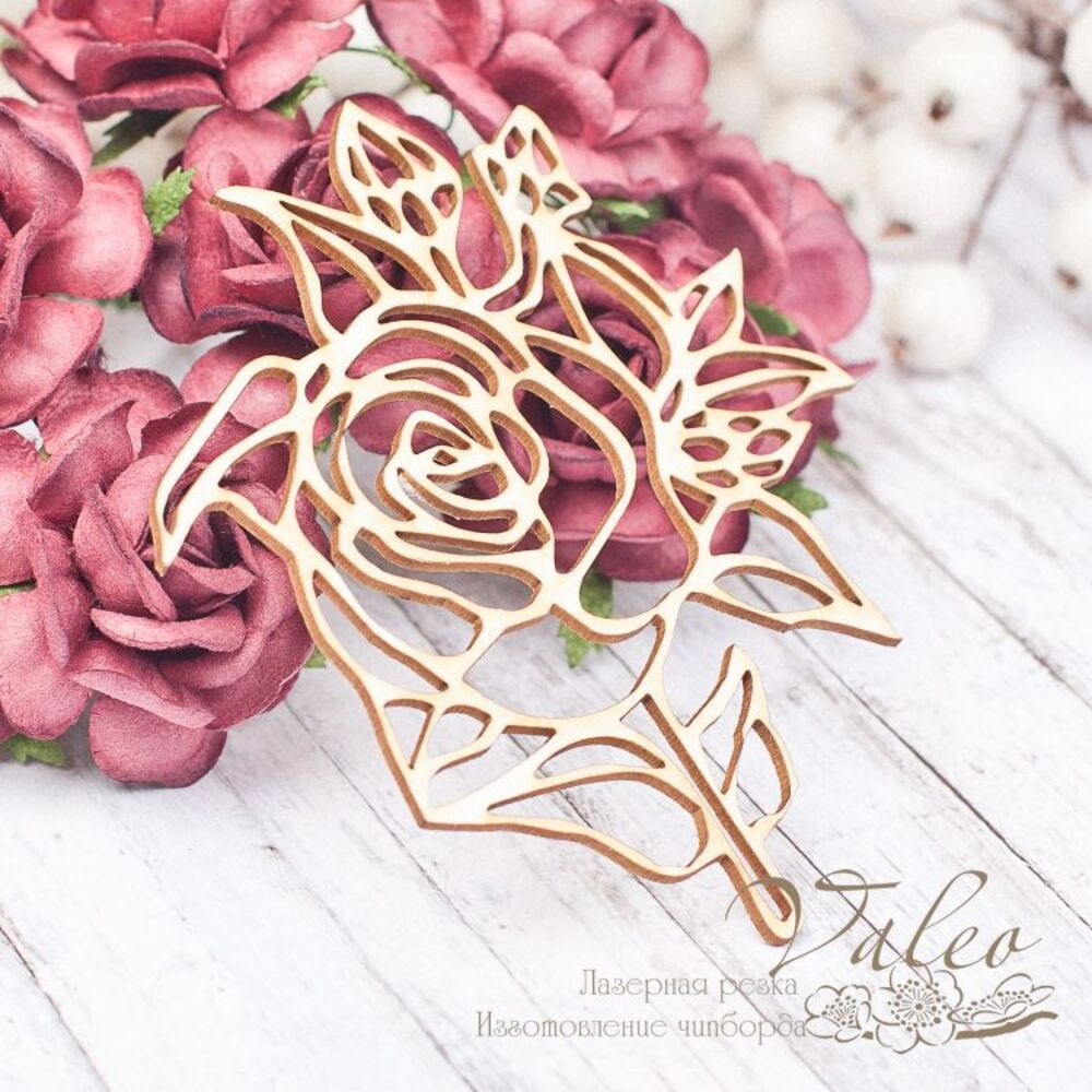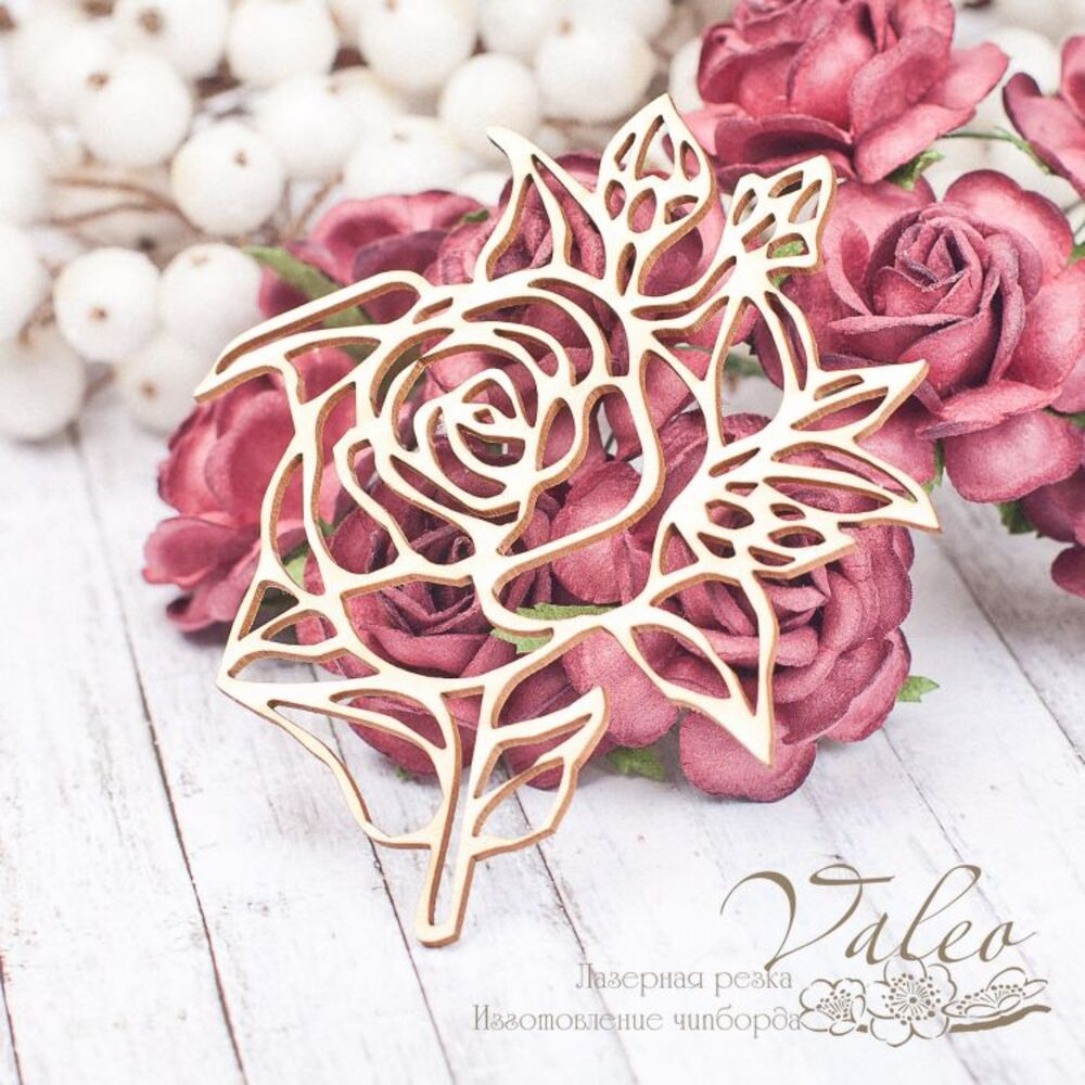 Чіпборд Valeo Троянда 74*79мм V1720 виготовлений із пивного картону молочного кольору. Товщина картону 1,5 мм. Краї чисті, світло-коричневі. Застосовується як декоративні елементи при виготовленні альбомів, листівок, запрошень