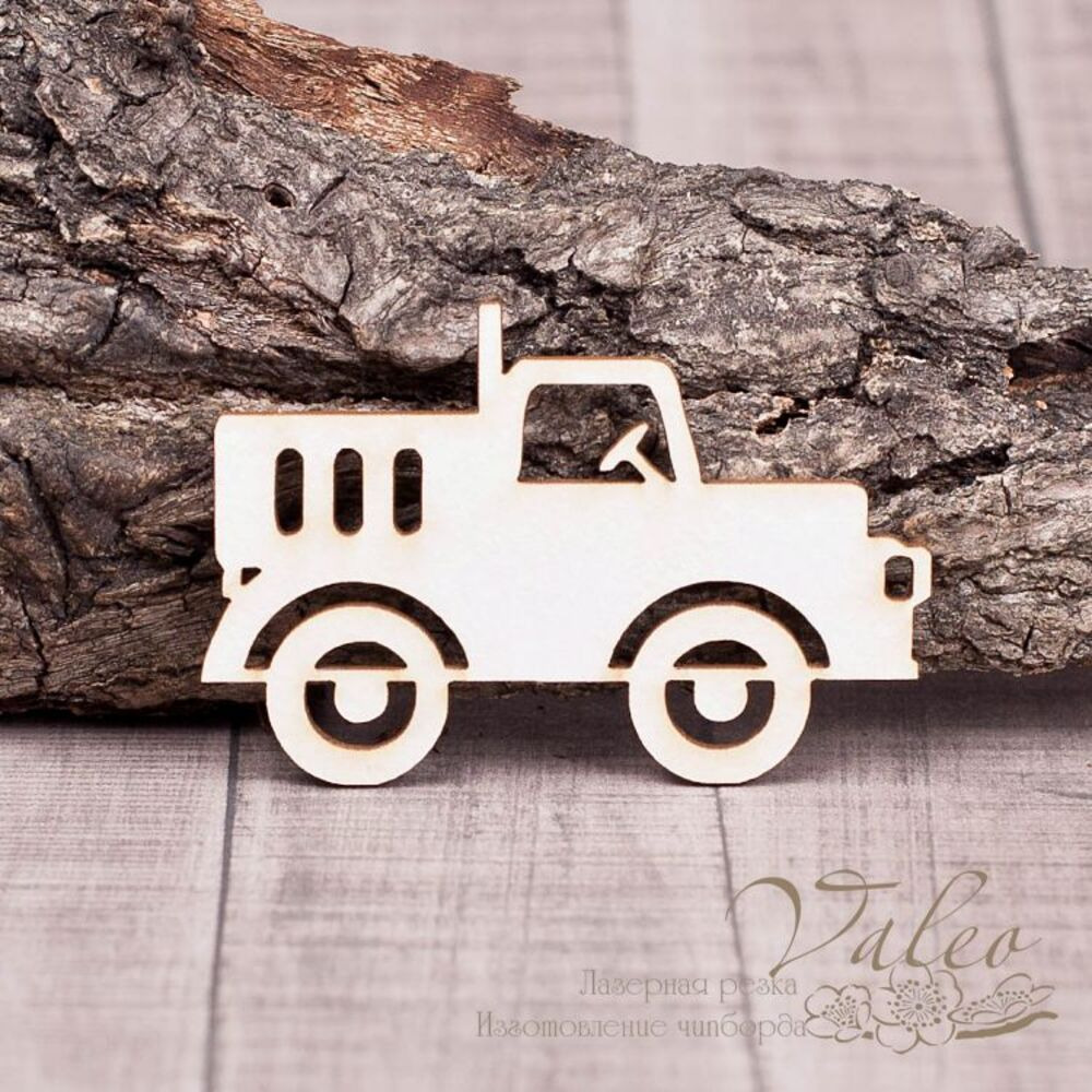 Чіпборд Valeo Вантажівка 60*40мм V1341 виготовлена з пивного картону молочного кольору. Товщина картону 1,5 мм. Краї чисті, світло-коричневі. Застосовується як декоративні елементи при виготовленні альбомів, листівок, запрошень