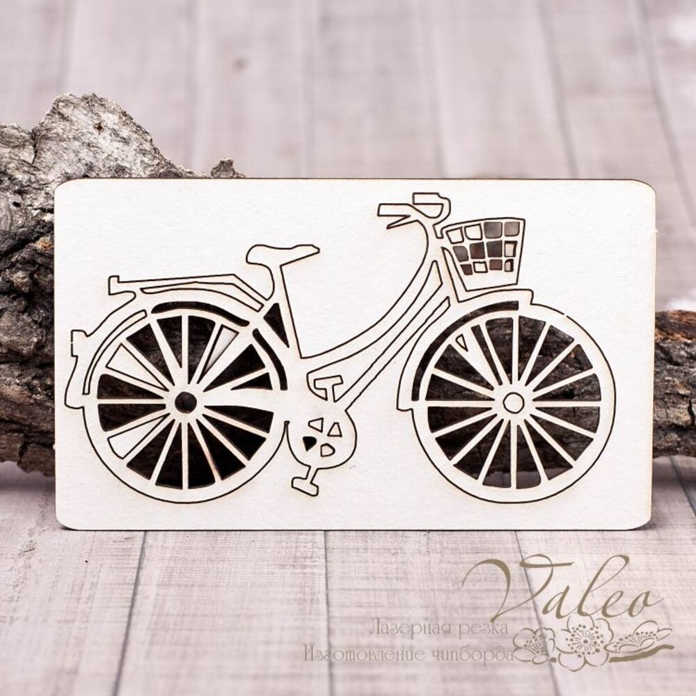 Чіпборд Valeo Велосипед 114*65мм V1243 виготовлений із пивного картону молочного кольору. Товщина картону 1,5 мм. Краї чисті, світло-коричневі. Застосовується як декоративні елементи при виготовленні альбомів, листівок, запрошень
