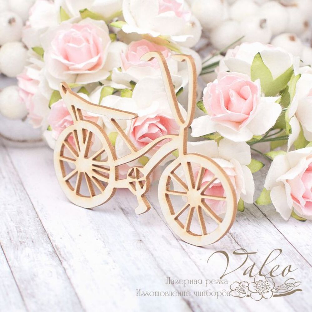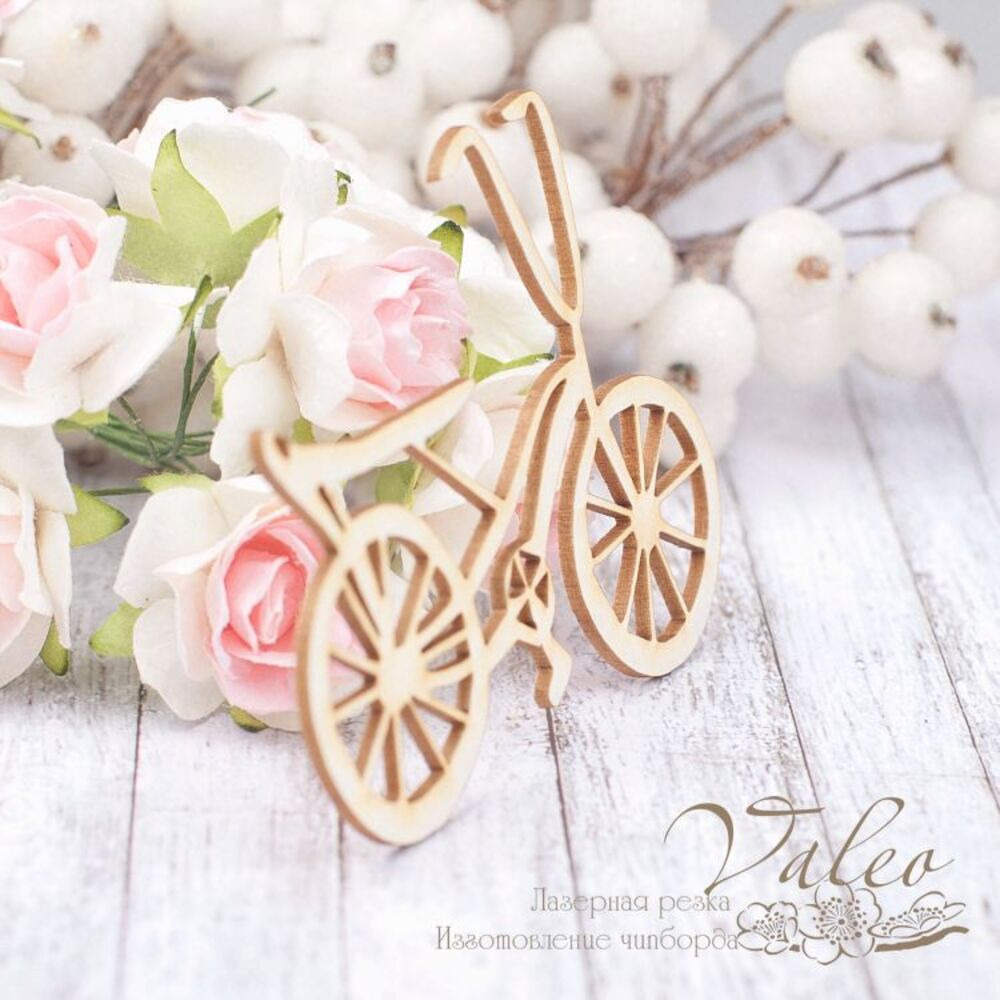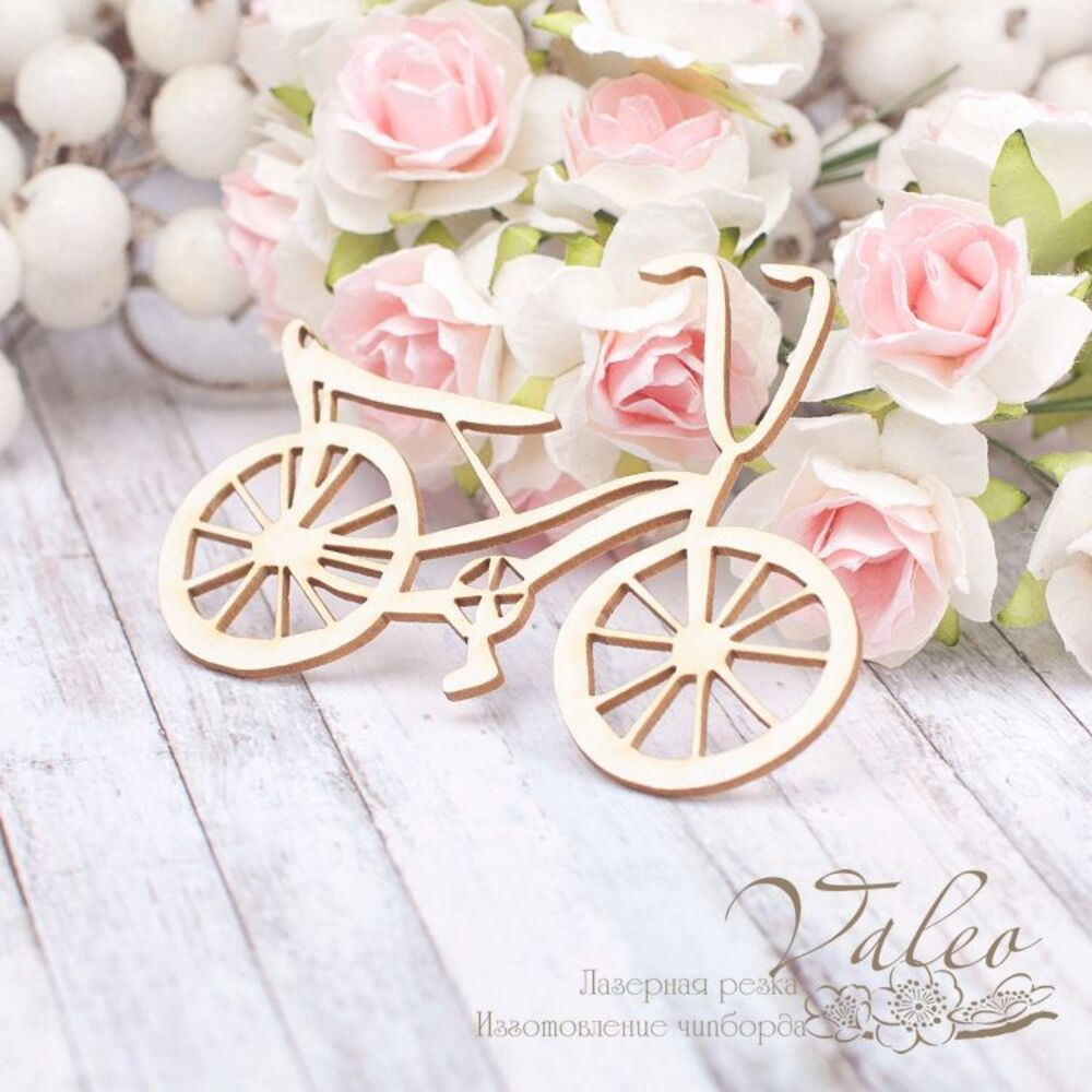 Чіпборд Valeo Велосипед 76*57мм V1888 виготовлений із пивного картону молочного кольору. Товщина картону 1,5 мм. Краї чисті, світло-коричневі. Застосовується як декоративні елементи при виготовленні альбомів, листівок, запрошень
