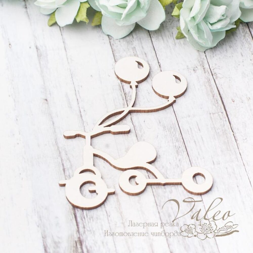 Чіпборд Valeo Велосипед з кульками 52*68мм V2879 виготовлений із пивного картону молочного кольору. Товщина картону 1,5 мм. Краї чисті, світло-коричневі. Застосовується як декоративні елементи при виготовленні альбомів, листівок, запрошень