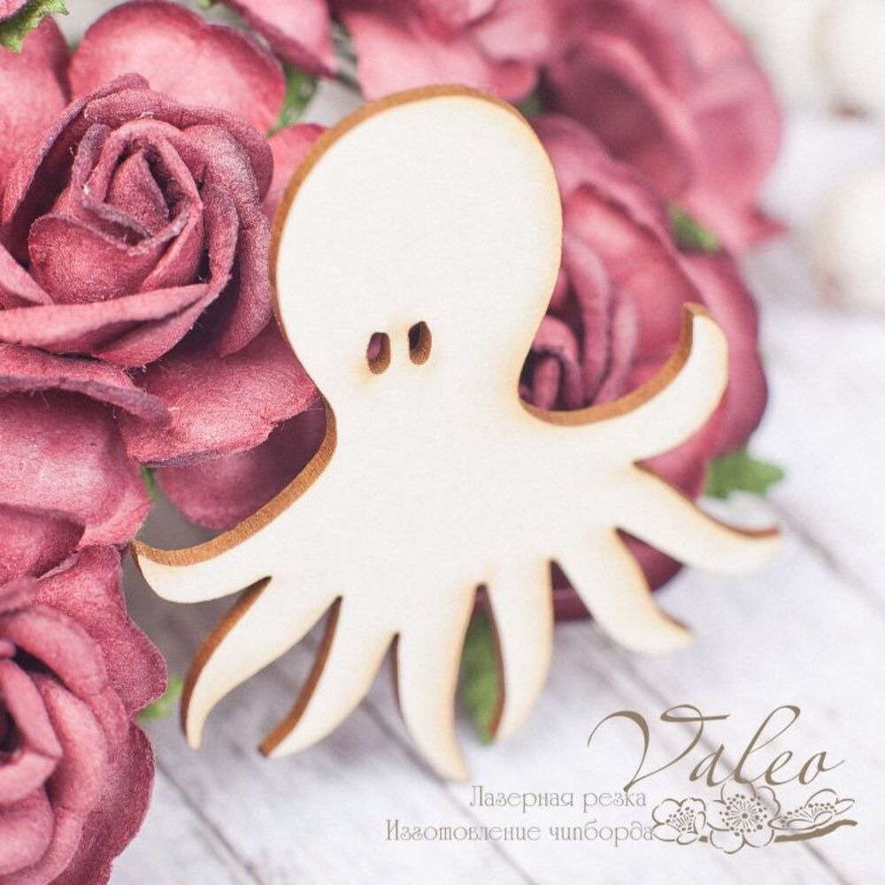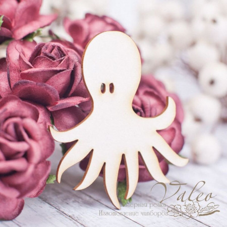 Чіпборд Valeo Восьминіг 46*54мм V1753 виготовлений із пивного картону молочного кольору. Товщина картону 1,5 мм. Краї чисті, світло-коричневі. Застосовується як декоративні елементи при виготовленні альбомів, листівок, запрошень