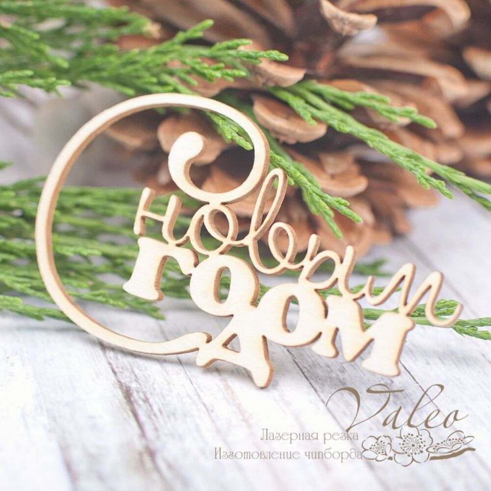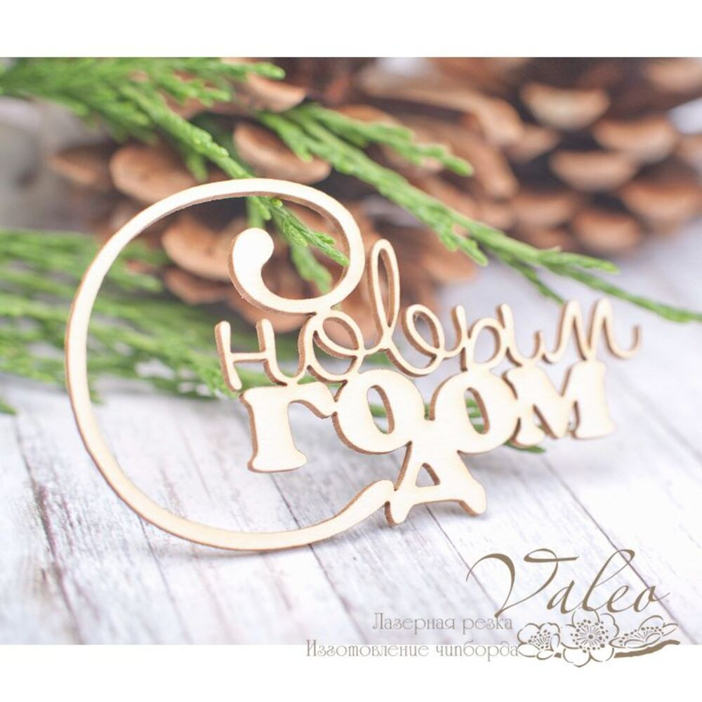 Чіпборд Valeo З новим роком 70*41мм V1978 виготовлений із пивного картону молочного кольору. Товщина картону 1,5 мм. Краї чисті, світло-коричневі. Застосовується як декоративні елементи при виготовленні альбомів, листівок, запрошень