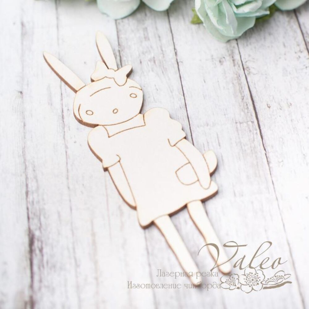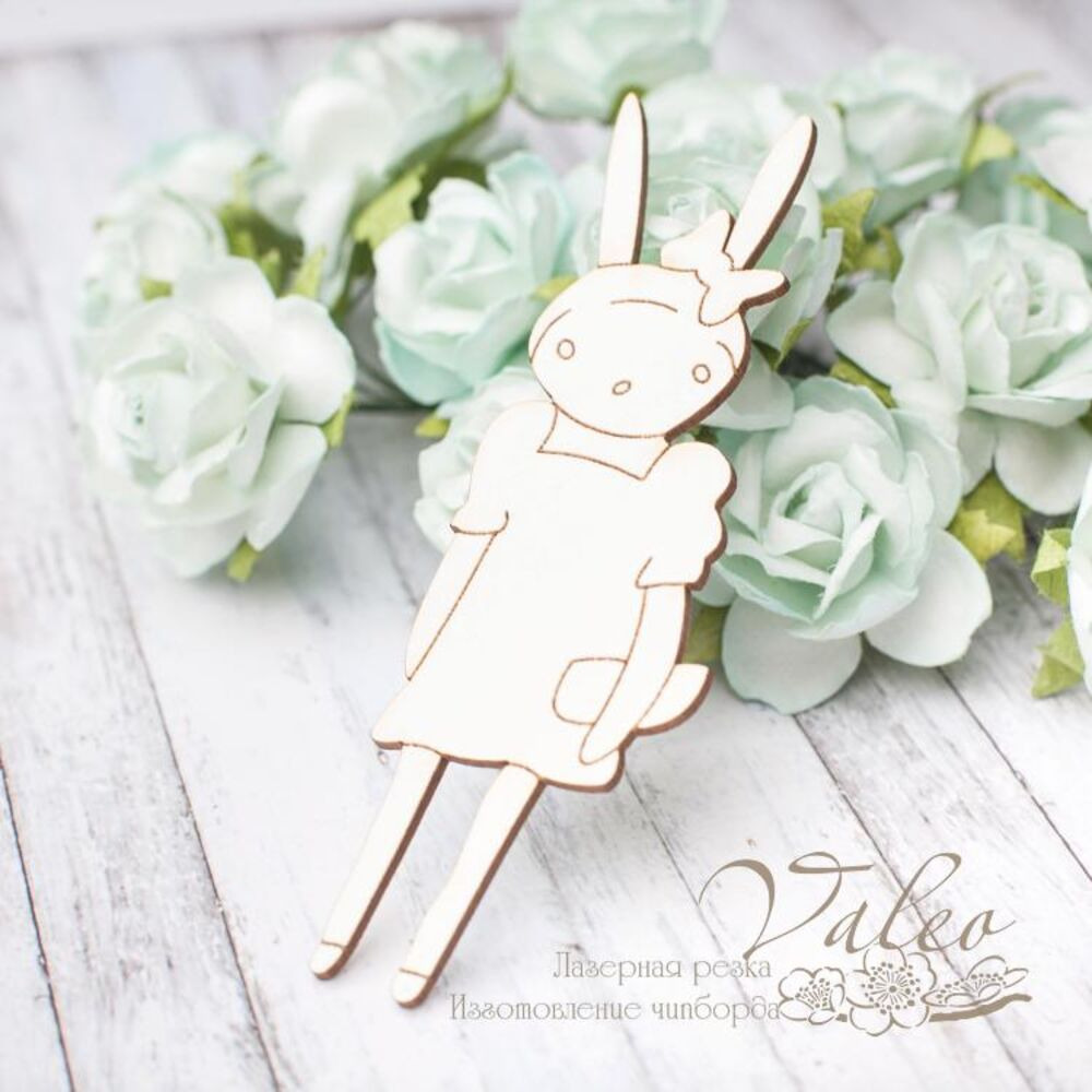 Чіпборд Valeo Зайчик 28*85мм V2860 виготовлений із пивного картону молочного кольору. Товщина картону 1,5 мм. Краї чисті, світло-коричневі. Застосовується як декоративні елементи при виготовленні альбомів, листівок, запрошень