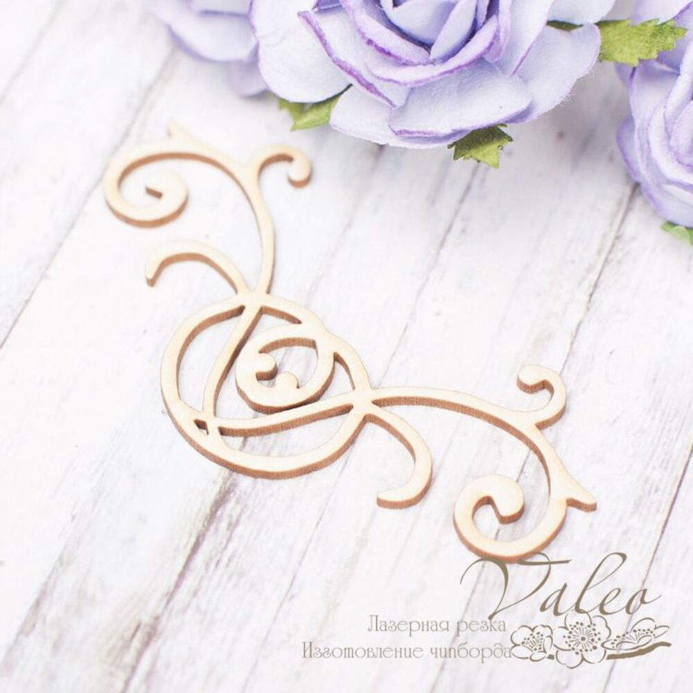 Чіпборд Valeo Завиток 55*52мм V2191 виготовлений із пивного картону молочного кольору. Товщина картону 1,5 мм. Краї чисті, світло-коричневі. Застосовується як декоративні елементи при виготовленні альбомів, листівок, запрошень