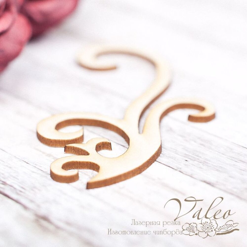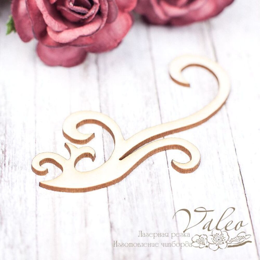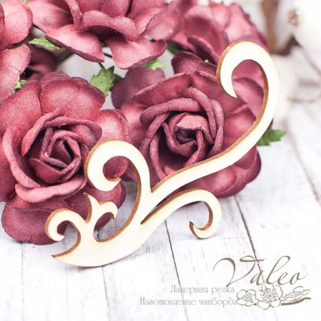 Чіпборд Valeo Завиток 66*35мм V1616 виготовлений із пивного картону молочного кольору. Товщина картону 1,5 мм. Краї чисті, світло-коричневі. Застосовується як декоративні елементи при виготовленні альбомів, листівок, запрошень