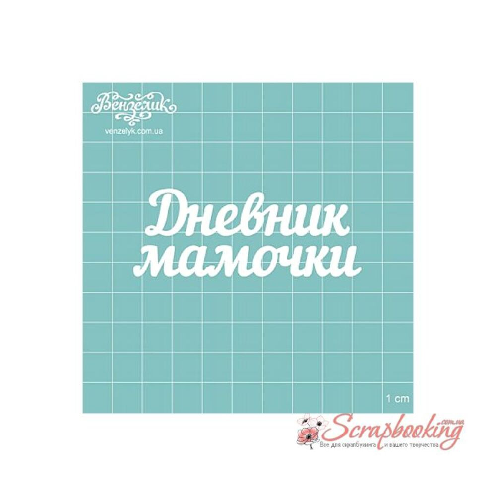 Чипборд Вензелик Дневник мамочки, 76*29мм изготовлен из пивного картона толщиной 1,5мм. Края чистые, светло коричневые. Применяется в качестве декоративных элементов при изготовлении альбомов, открыток, пригласительных