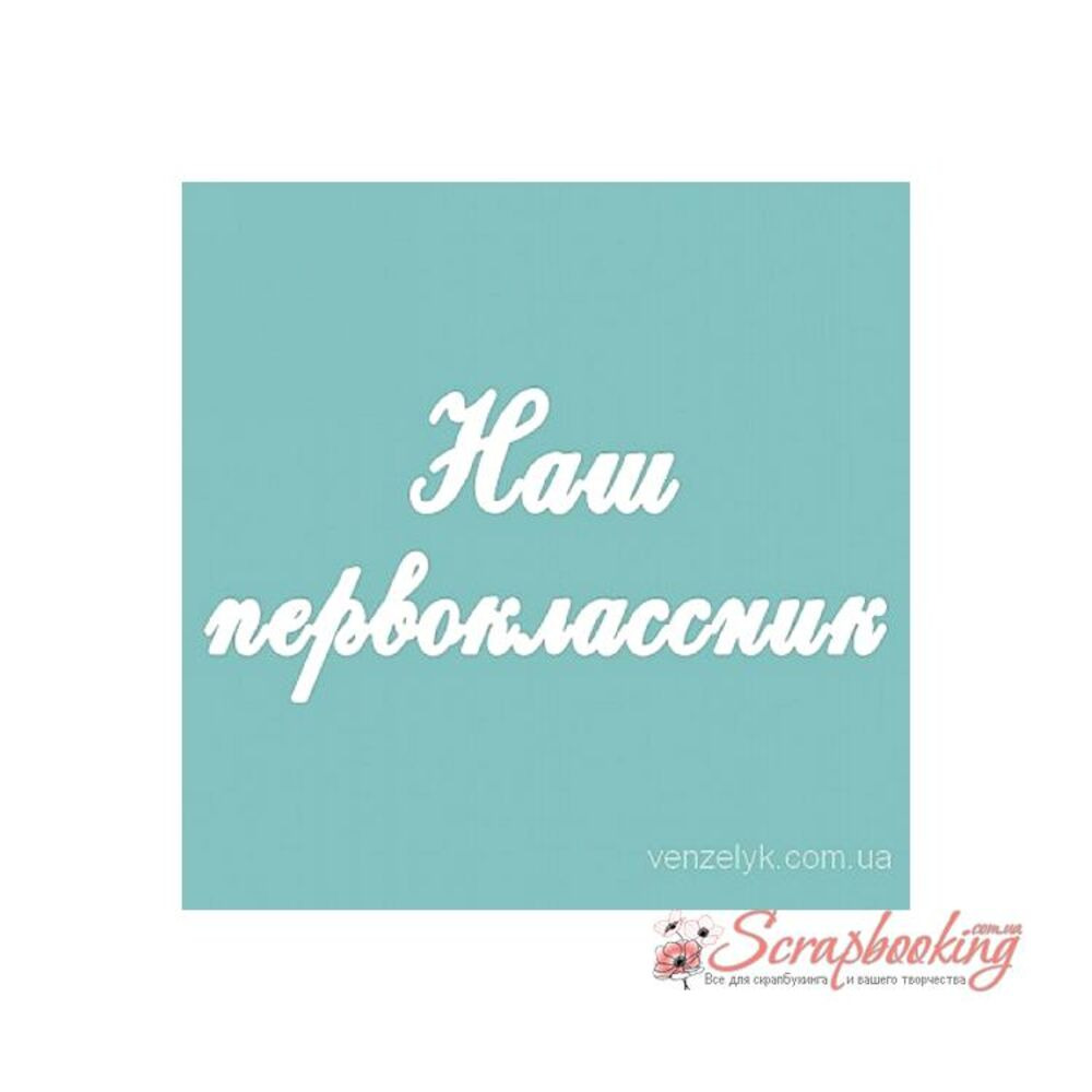 Чіпборд Вензелік Наш першокласник, 28*163мм виготовлений із пивного картону завтовшки 1,5мм. Краї чисті, світло-коричневі. Застосовується як декоративні елементи при виготовленні альбомів, листівок, запрошень