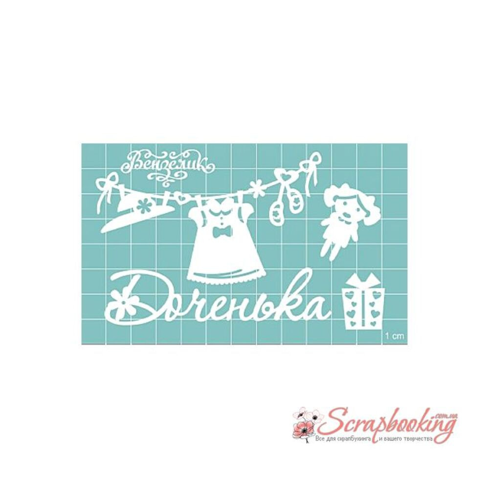 Чипборд Вензелик Подвеска Доченька, 115*70мм изготовлен из пивного картона толщиной 1,5мм. Края чистые, светло коричневые. Применяется в качестве декоративных элементов при изготовлении альбомов, открыток, пригласительных
